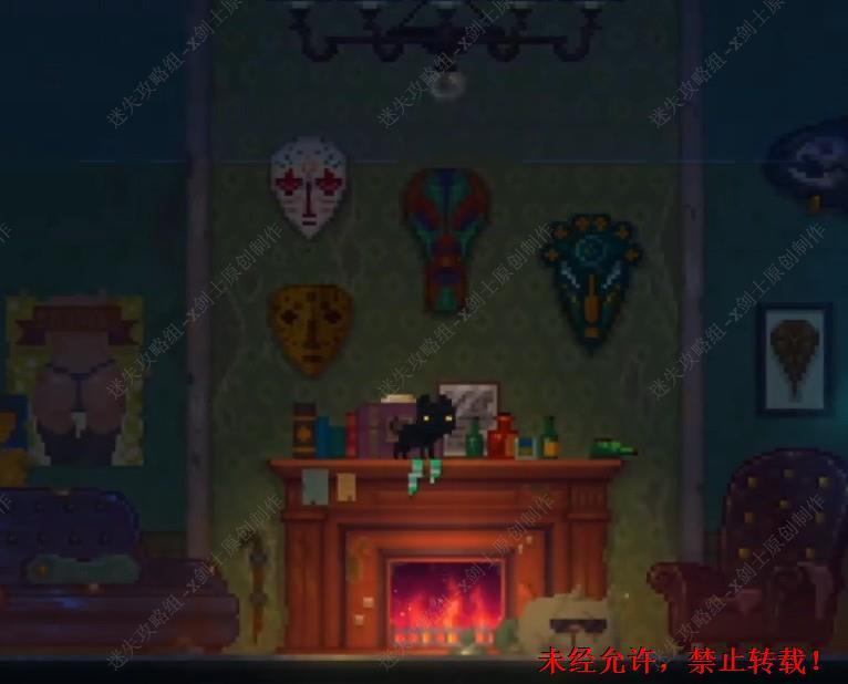 105. 之后返回到壁炉这个位置,在这里可以找到猫粮。105