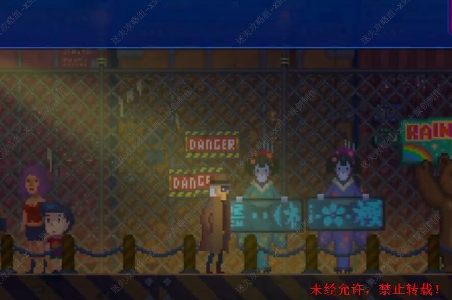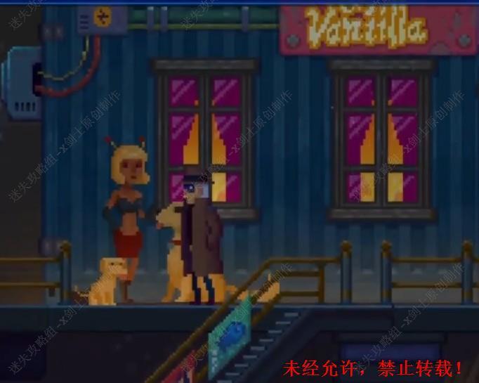 141. 往左边走在这里就会看到其中一个舞娘,在这里进行对话,知道要关掉中间的机器人舞娘才会乖乖离开这里,在这里我们打开机器箱,这个小游戏没有解密的成分完全靠反应能力,将上面的弹簧推到上面之后整个机器就可以解锁了,关闭机器之后和舞娘进行交流,在这里可以得到一些案件相关的信息。141