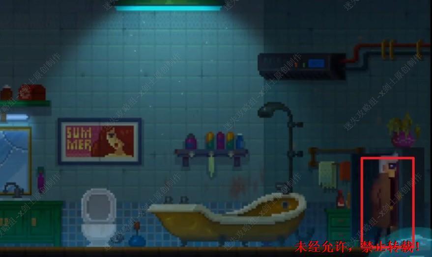 102. 来到厕所位置,在最右边的柜子里面可以看到柜子,可以找到一份资料。102