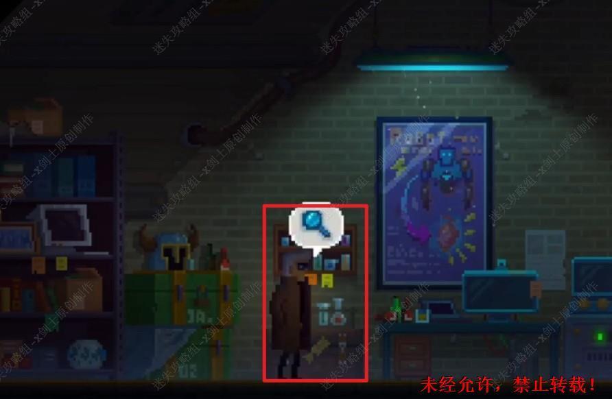 107. 返回到三楼的工作间当中,在上面右边的位置找到工作简报,往左走可以在柜子这里找到病理报告。107.1