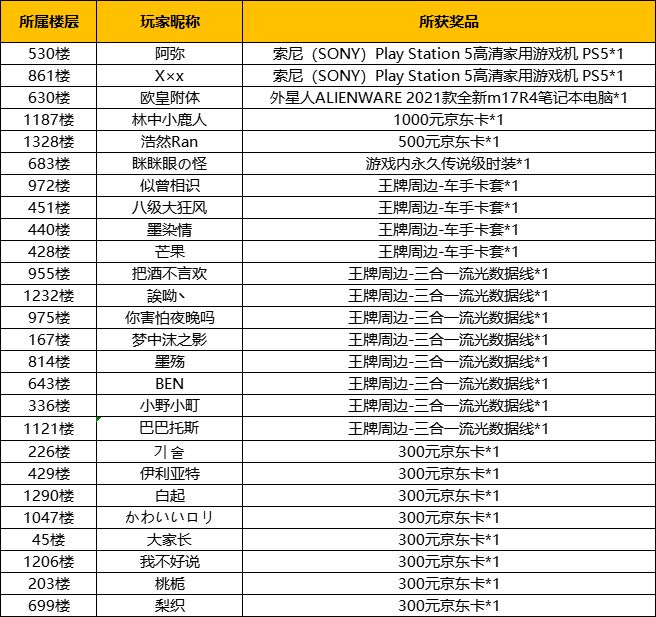 ②有效参与楼层数满300楼的时候,我们额外追加抽取以下奖品: