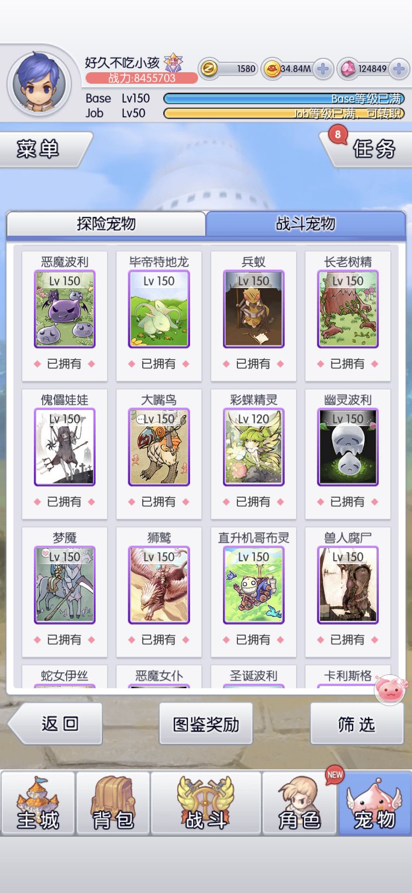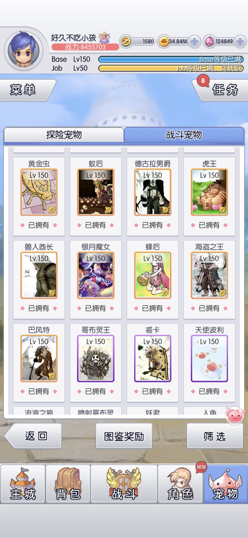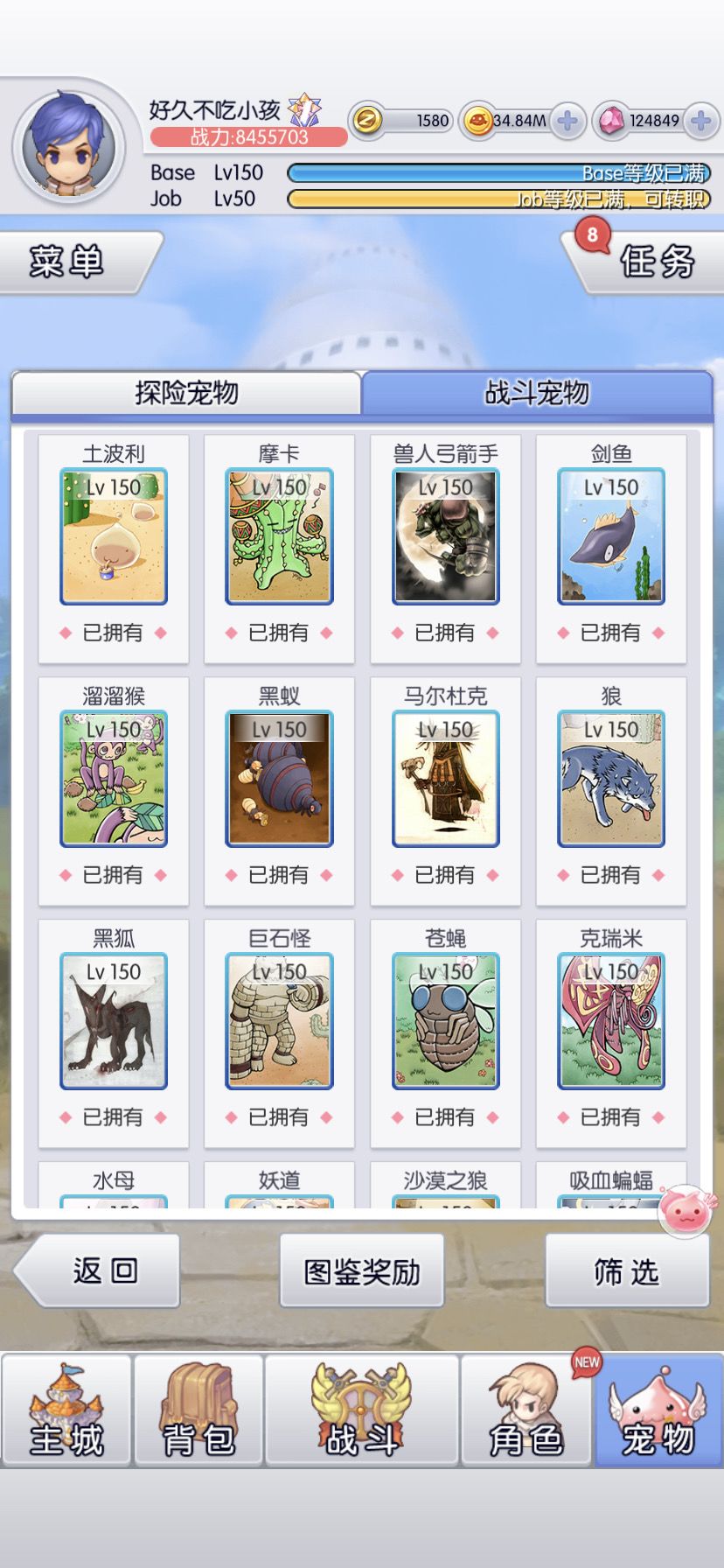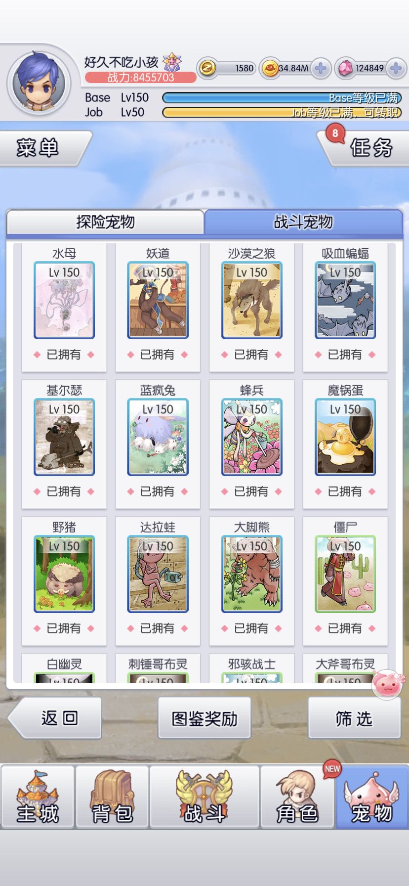 6转目标是全宠150(虽然还有3只没到,等活动收集碎片)