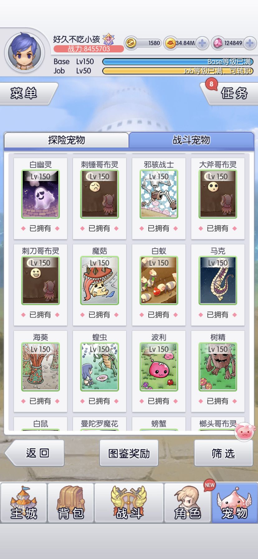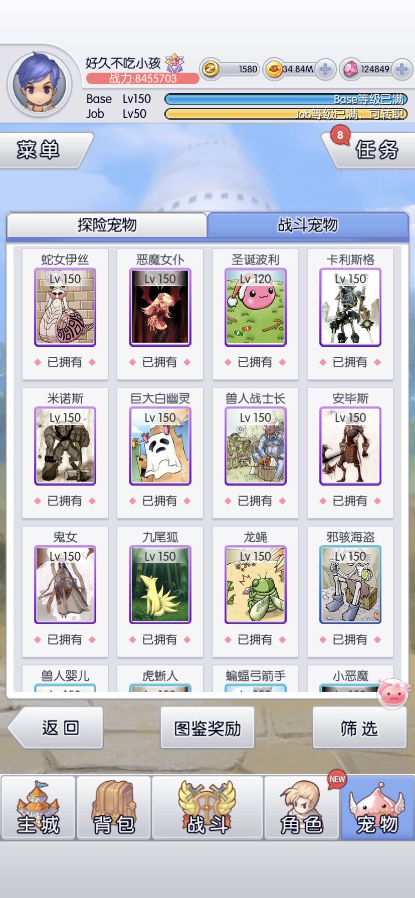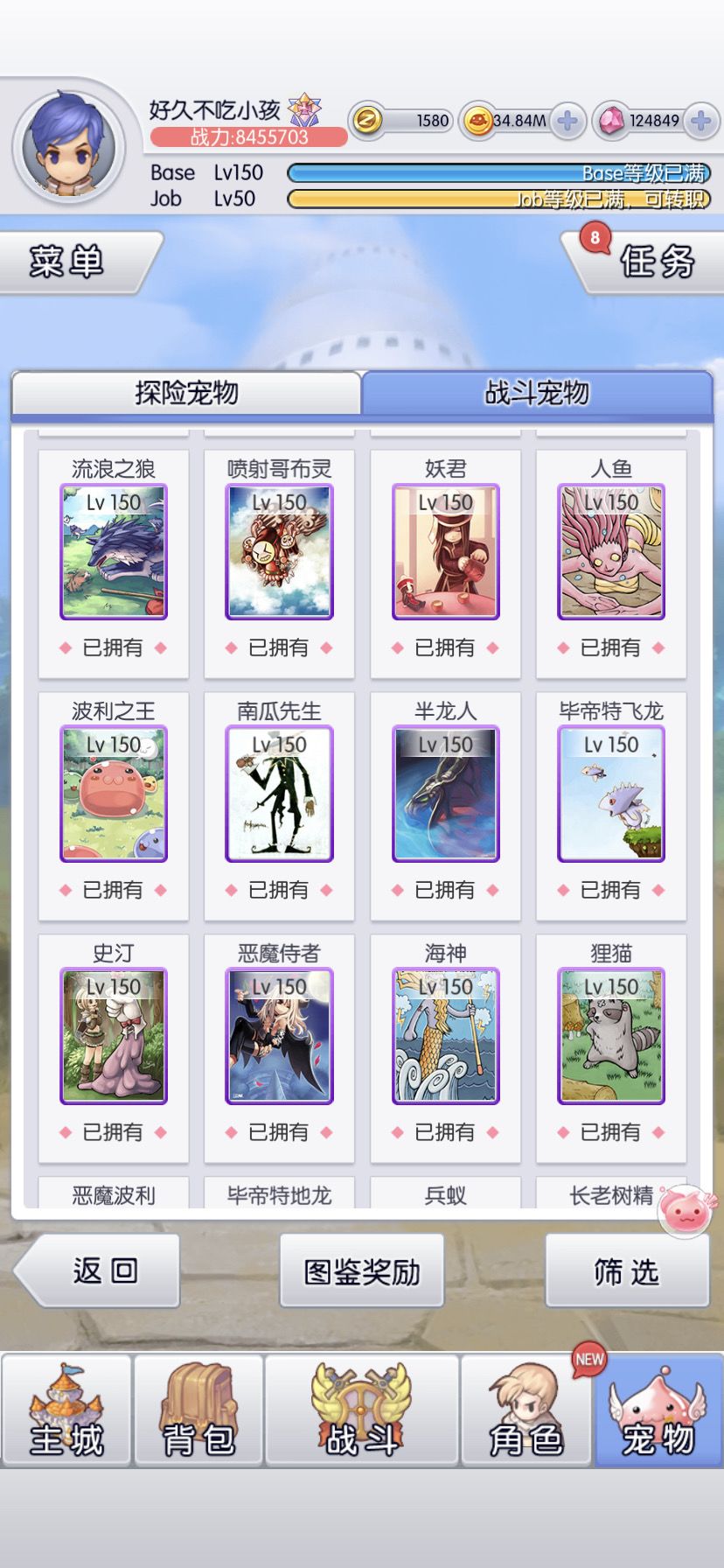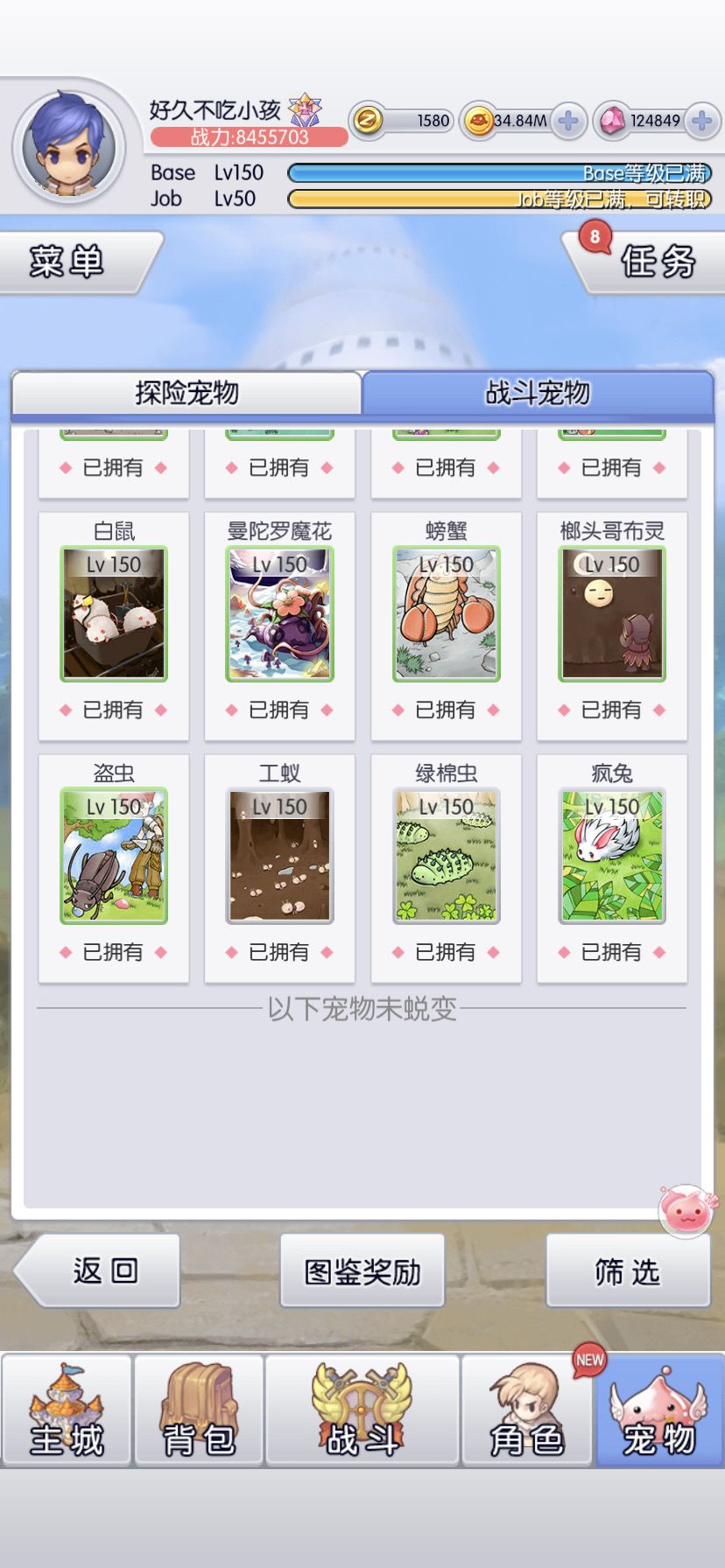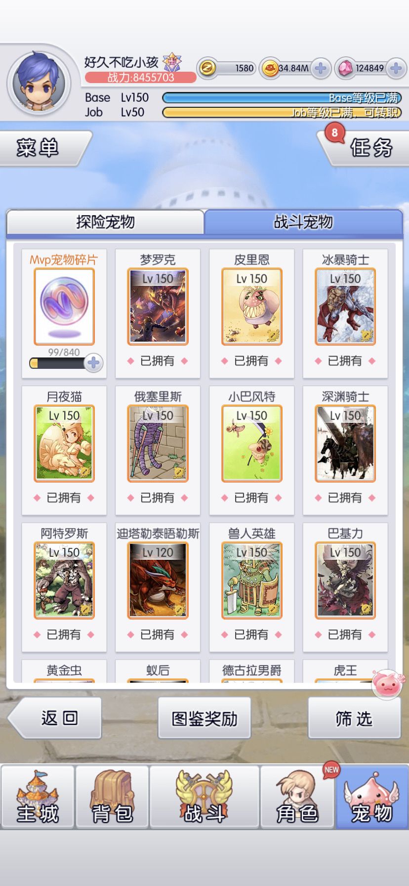 6转目标是全宠150(虽然还有3只没到,等活动收集碎片)