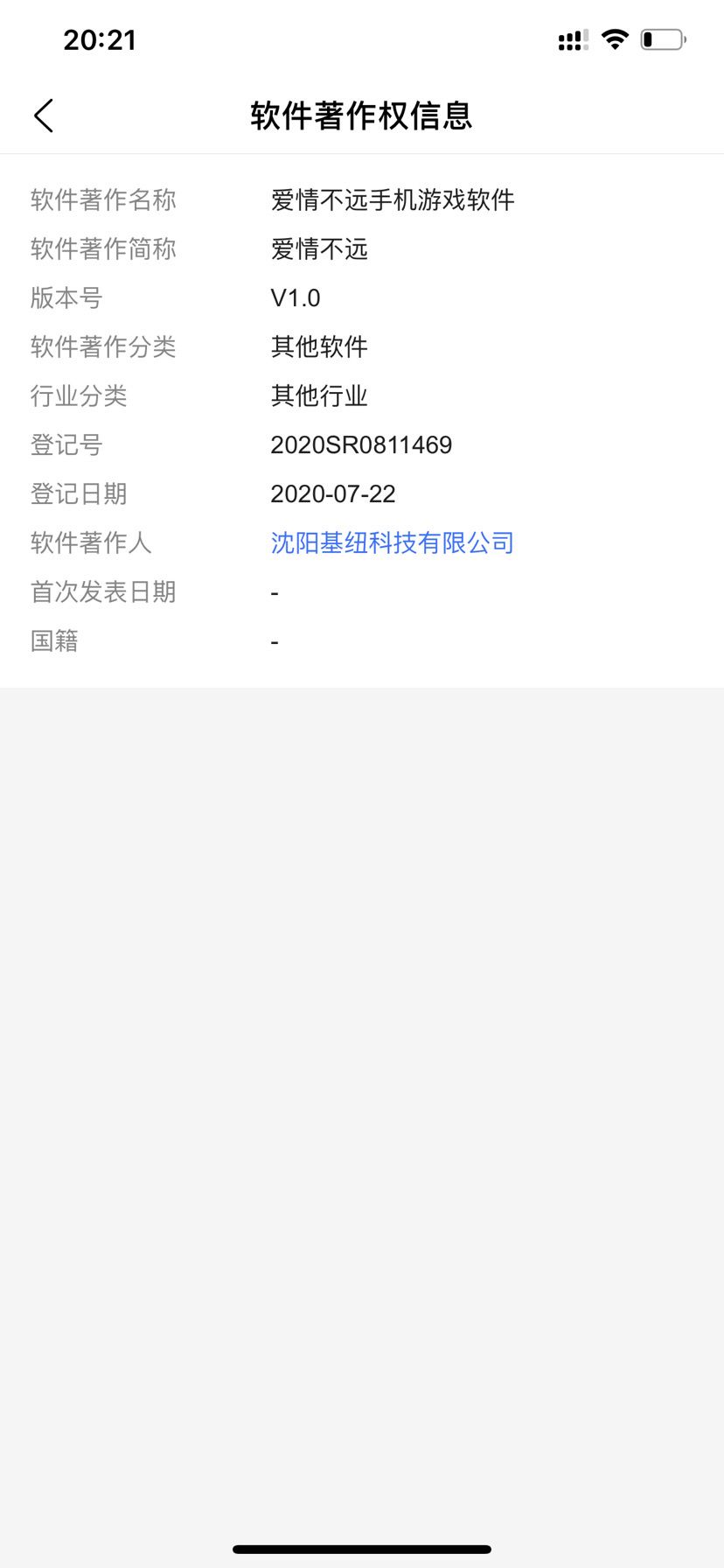 通过企业查询的各app可知,《爱情不远》由沈阳基纽科技有限公司开发,查询后可发现贵公司已有相关劳动争议案件并已判决。