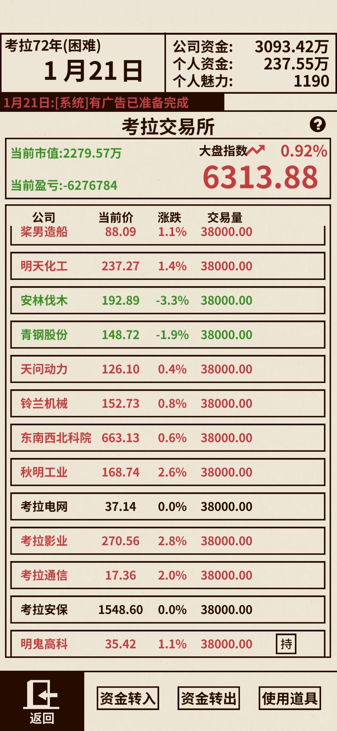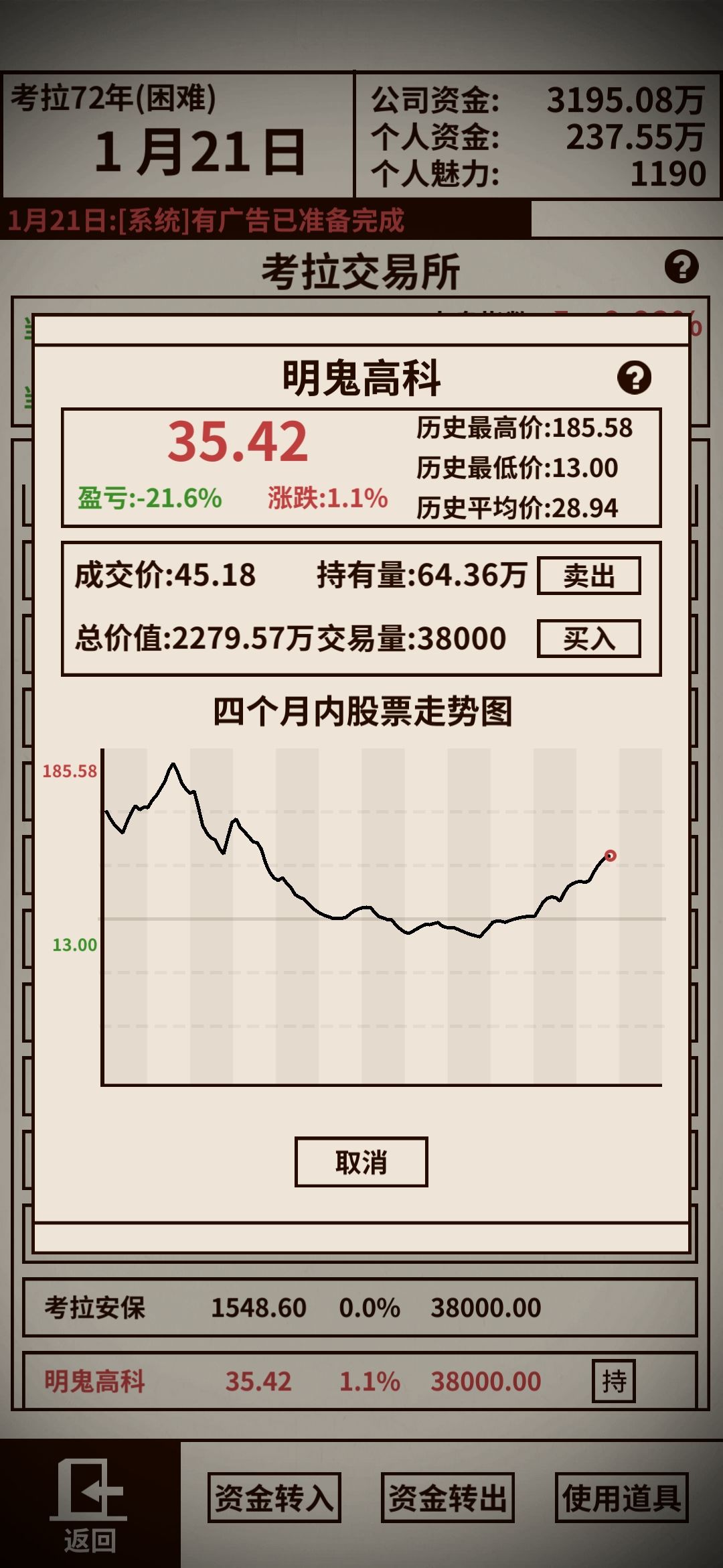 动不动就恶化,前期动动手术就能治疗700多,后期恶化太快,我算了一下,我每天一千多万收入,扣了税以后,要五天多才能减少3点恶化,后期手术治疗完全不顶用,股票赢了3000多W后期因为恶化导没时间去炒股票,买了一只之前股价最有潜力的股票,后来一直暴跌,最低跌到13点…一直买,现在价值两千多W,股票价格一直上不去,坑啊!估计已经治疗不了了,就连救心丸都拍卖不了了…这会怕是凉凉了