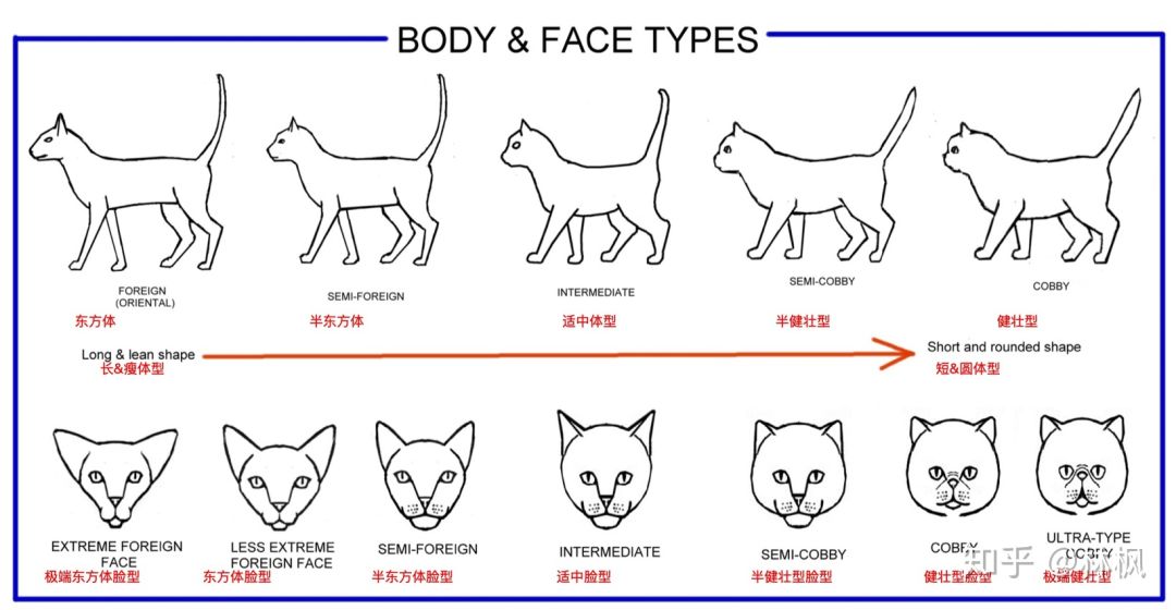许多品种都是全色系,不过体态、身材比例、脸型、五官等不一样,还有长毛、短毛,无毛、卷毛,折耳、卷耳,矮脚,短尾、无尾,等乱七八糟。还有不同的地方田园猫身材也不一样,耐寒型适合右边点,散热型适合左边的。右边点的比较憨态可掬,左边点的比较妖娆婀娜。