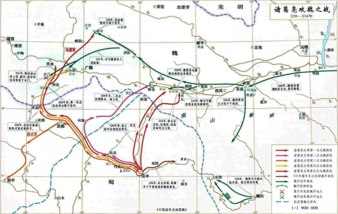 诸葛亮对军情非常看重,强调掌握军情,在战斗中常联动地形、天气、士气、敌军性格等多方面加以分析,历史中的他在北伐时不过带兵数万,就能打得数十万魏军龟缩不前。演义中在祁山设计吓退司马懿,趁机收割陇西小麦的故事,正是改编自正史中的上邽——卤城之战。