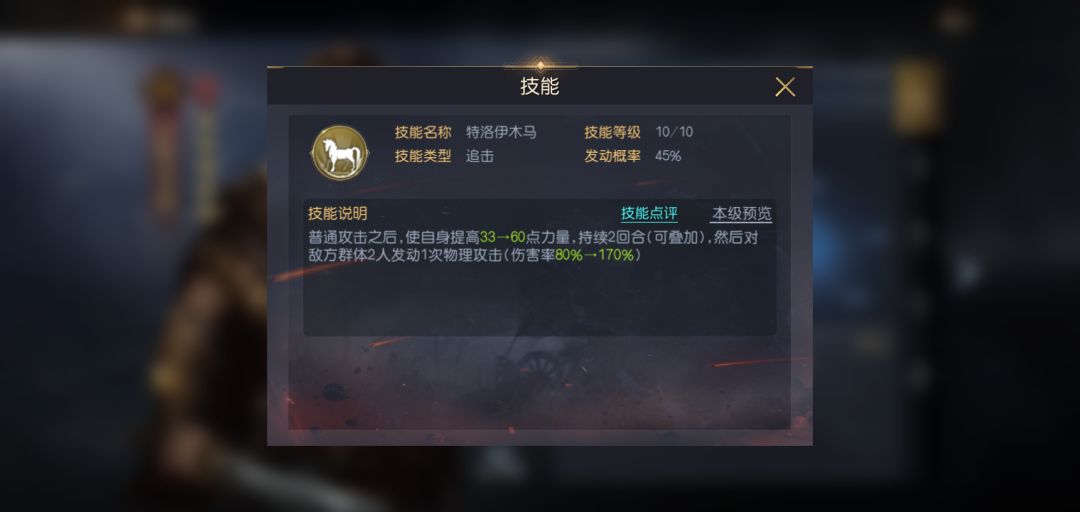 奥德修斯是追击菜刀中的一名强力将领,他拥有出色的力量、速度成长值,并且他的自带技能可提供非常多的额外力量值,虽然触发不如吕布的飞将稳定,但触发后连续叠加力量值,当奥德修斯满级时,实战触发技能效果后力量能达到400多点,会明显提高其他追击技能和普攻的伤害量。
