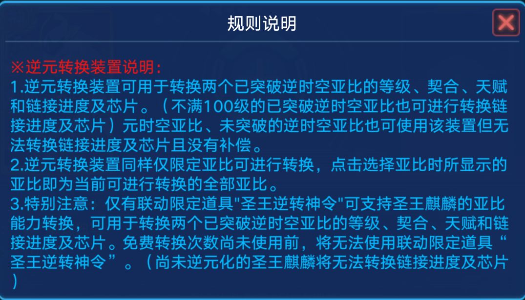 ③『元时空亚比、逆时空未突破亚比』和逆时空突破的亚比用逆元转换装置,不会交换链接,只会交换等级、契合度等级、天赋等级
