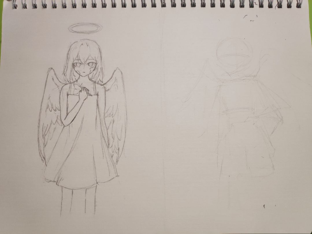 【不知道会不会勾线上色。毕竟草稿一时爽,勾线火葬场,上色也没想好是马克笔还是彩铅(马克笔确实难以把握),手绘党没有撤回键画错一笔跪着都要画完。。。】