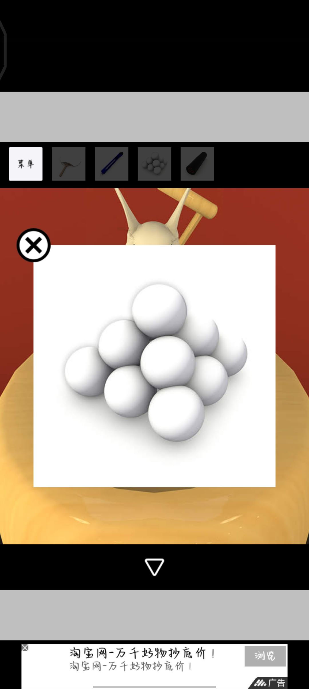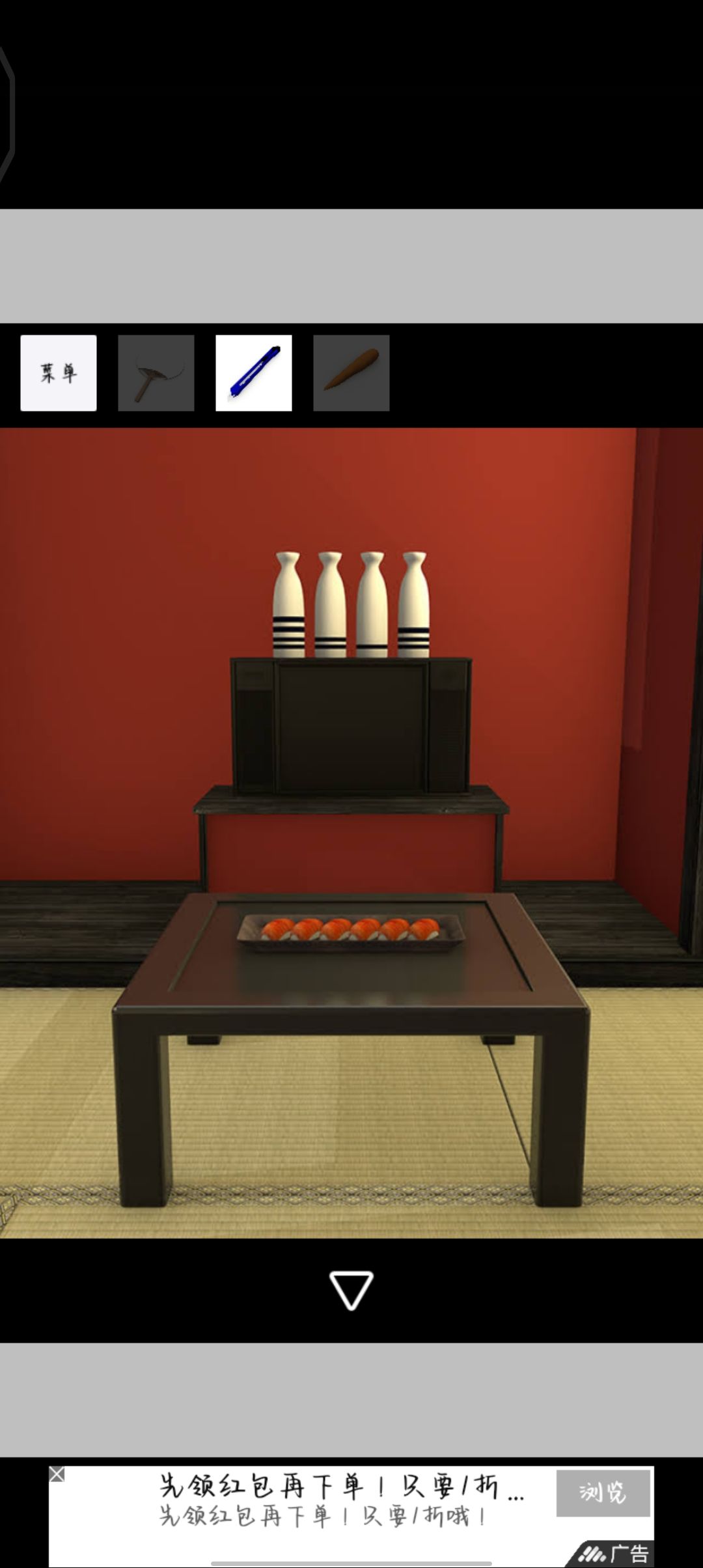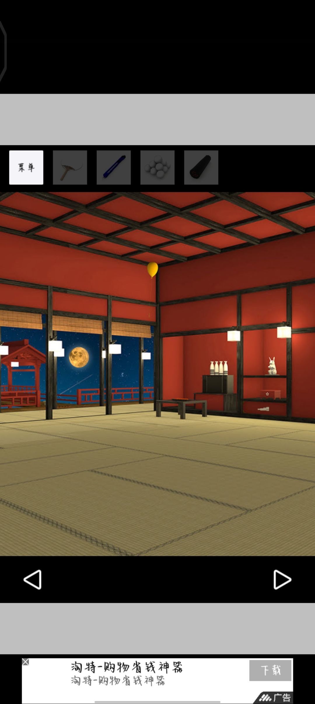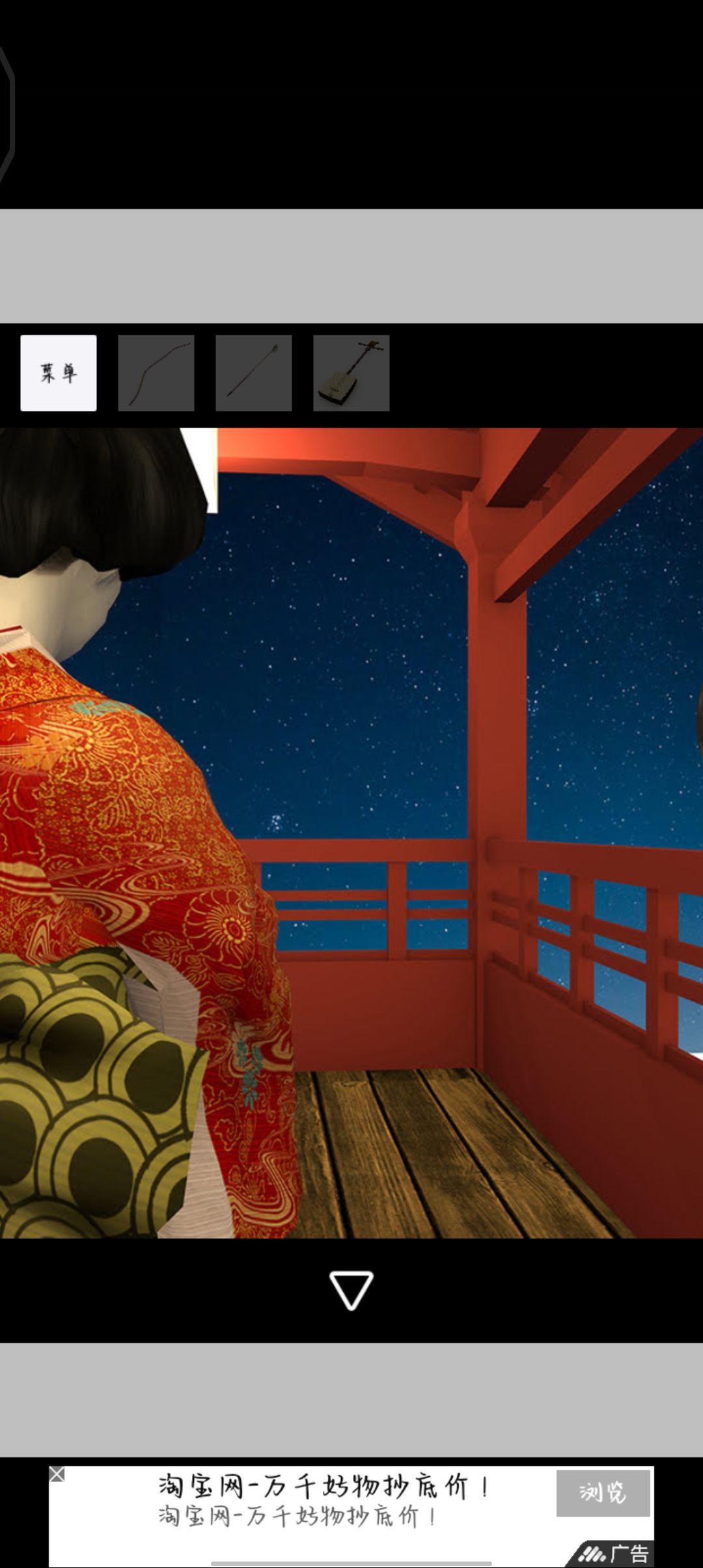 点击女人的琵琶,可以获得弦,接着组合成弓箭,将气球射下来,得到钥匙。解开房间