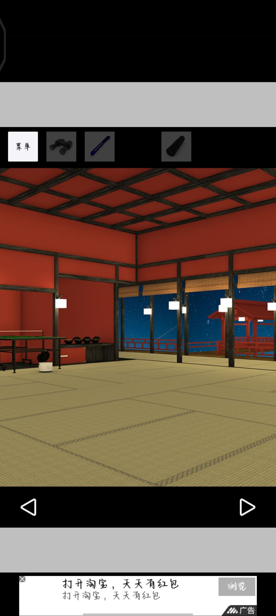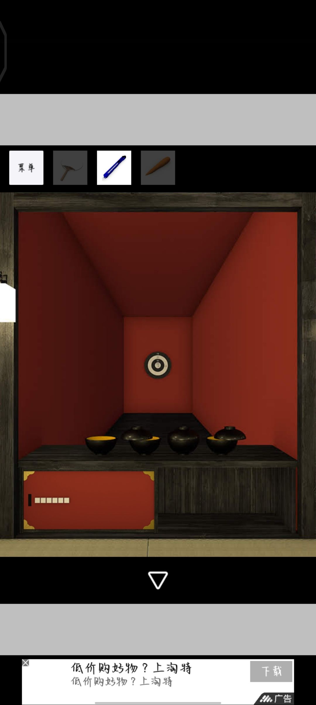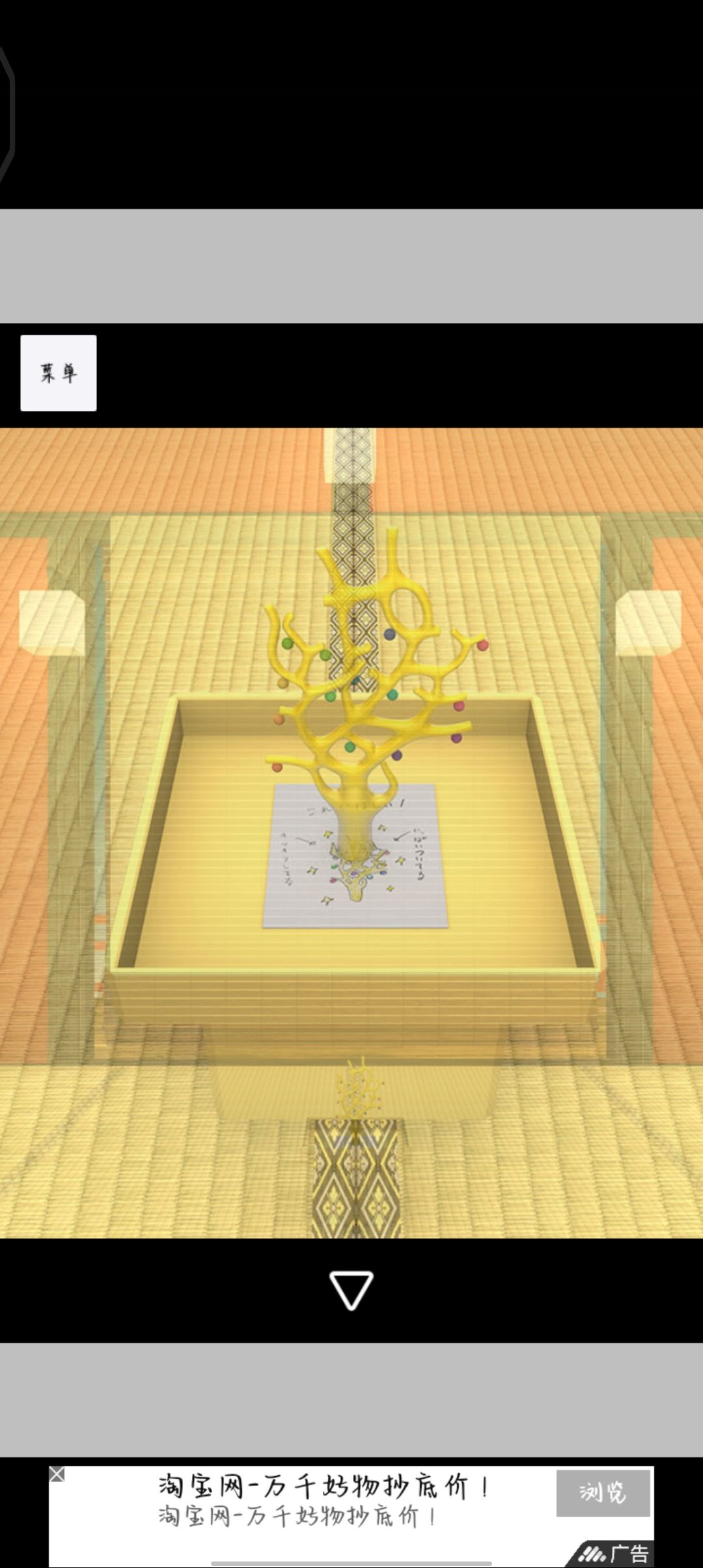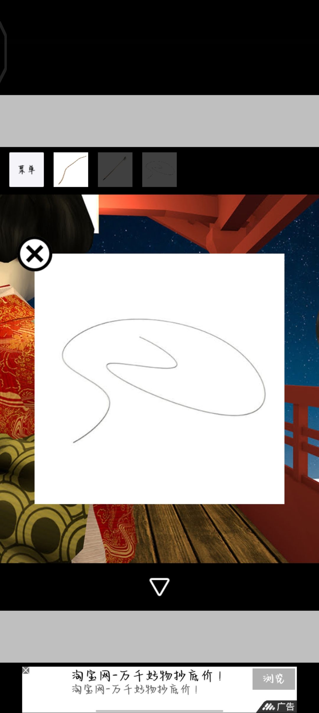 点击女人的琵琶,可以获得弦,接着组合成弓箭,将气球射下来,得到钥匙。解开房间
