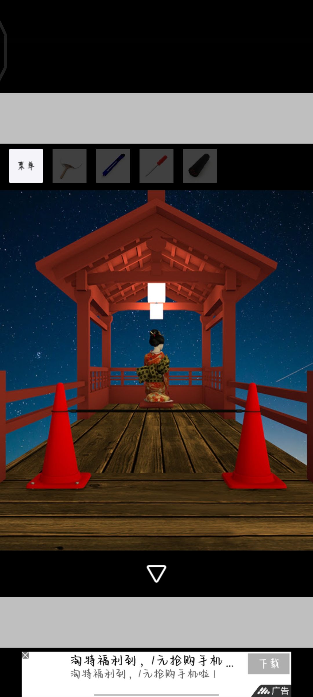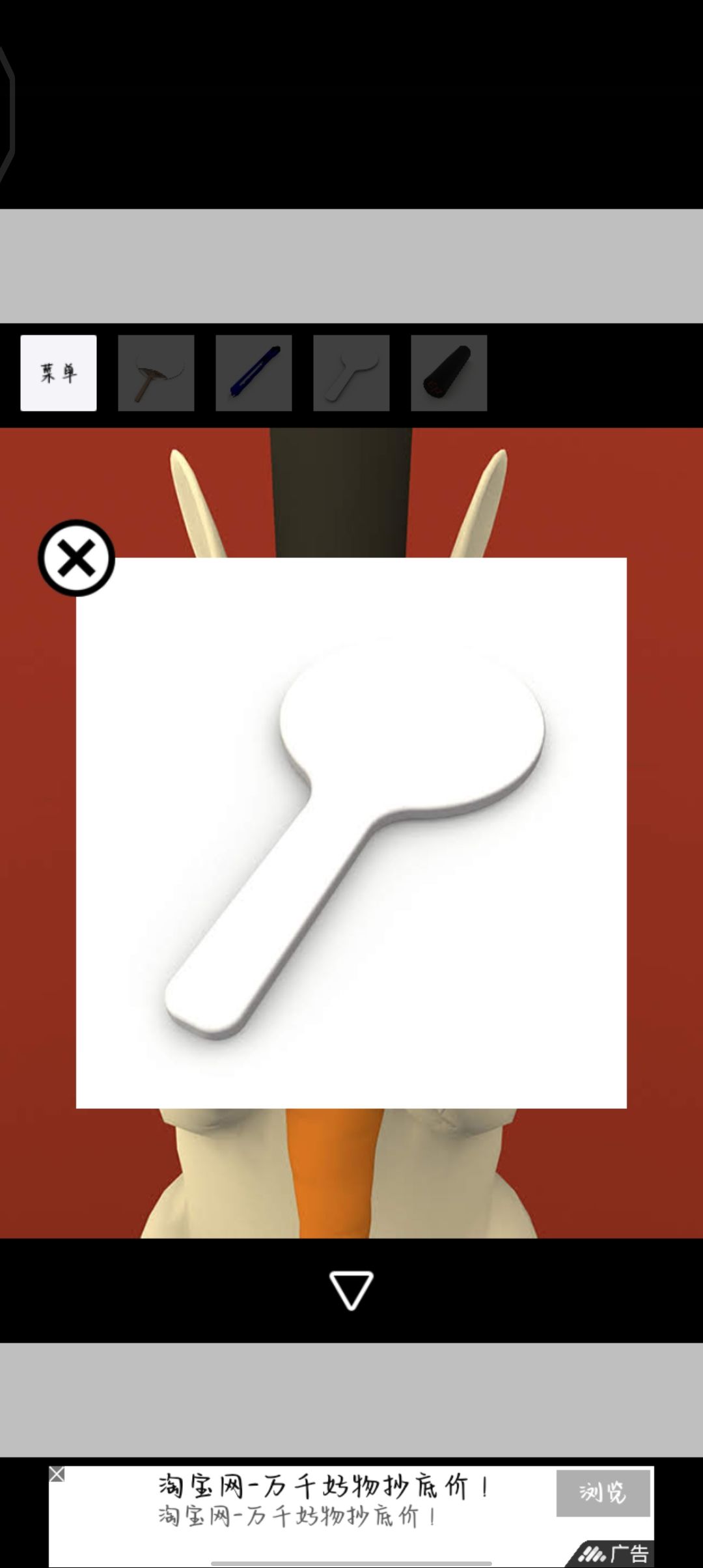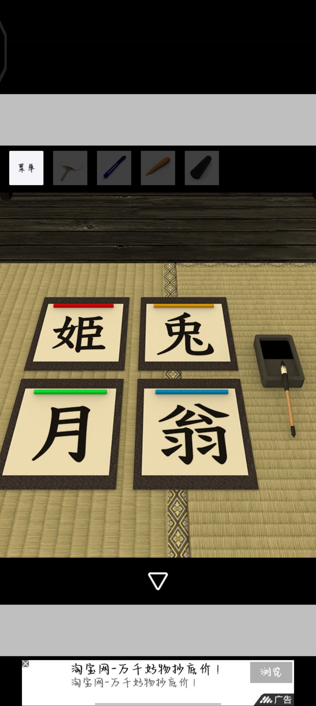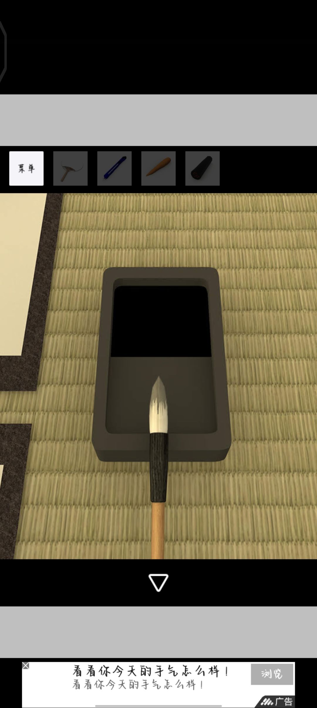 点击女人的琵琶,可以获得弦,接着组合成弓箭,将气球射下来,得到钥匙。解开房间