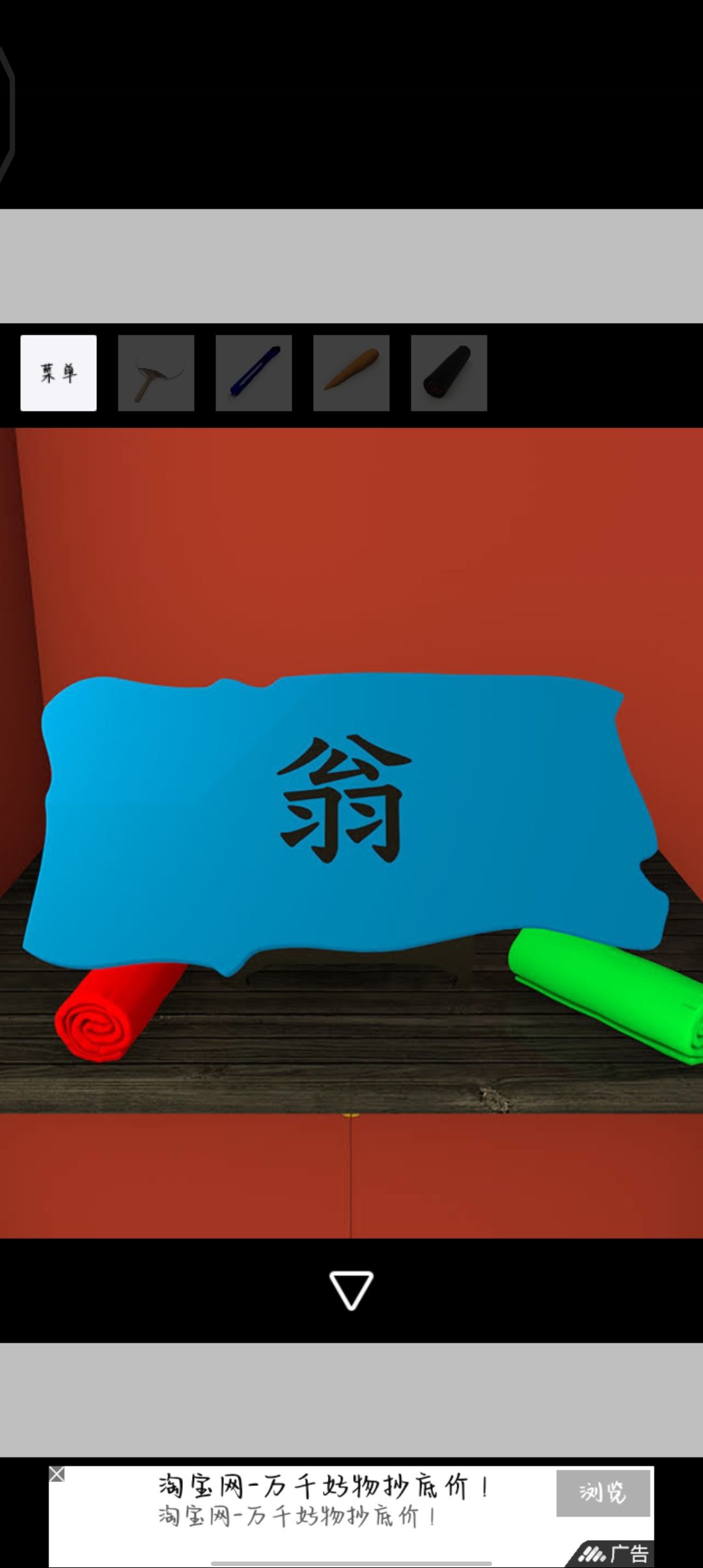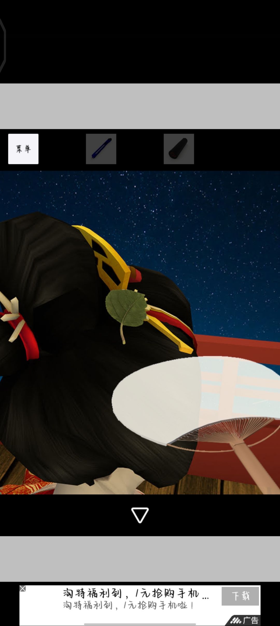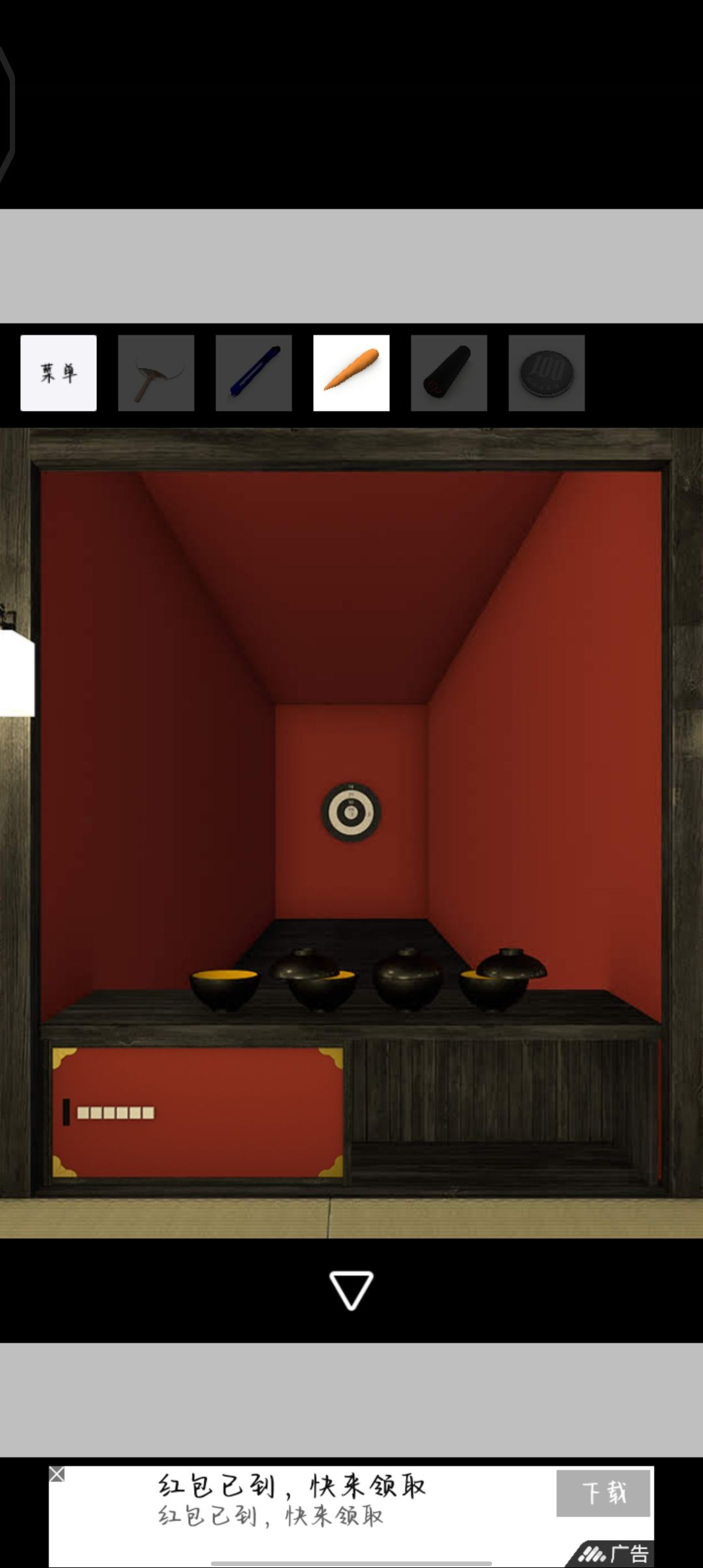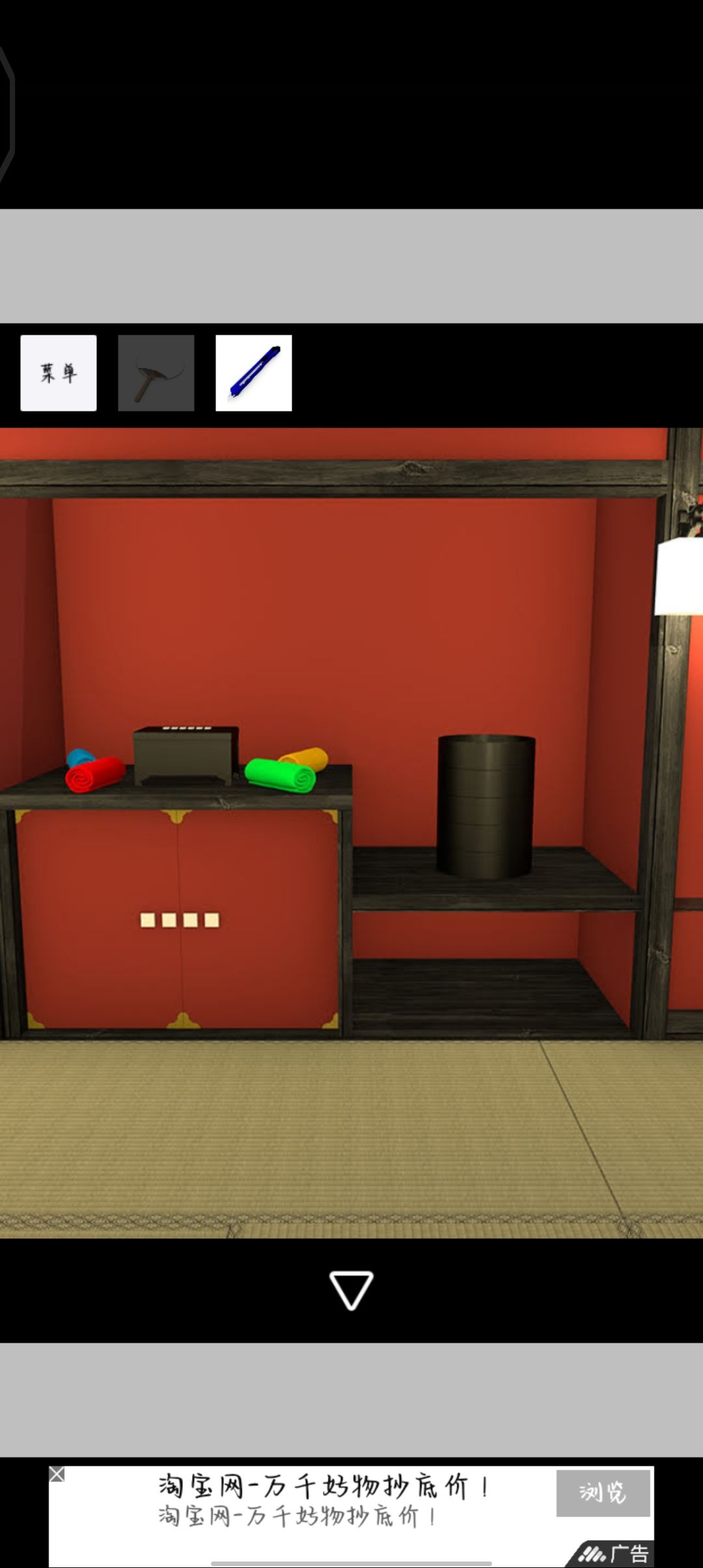 点击女人的琵琶,可以获得弦,接着组合成弓箭,将气球射下来,得到钥匙。解开房间