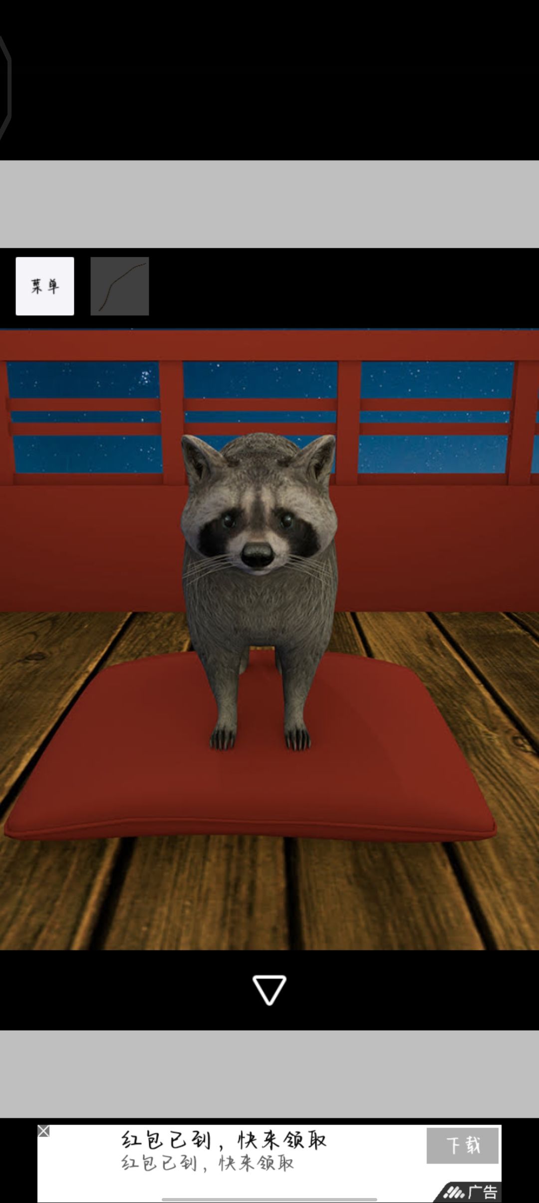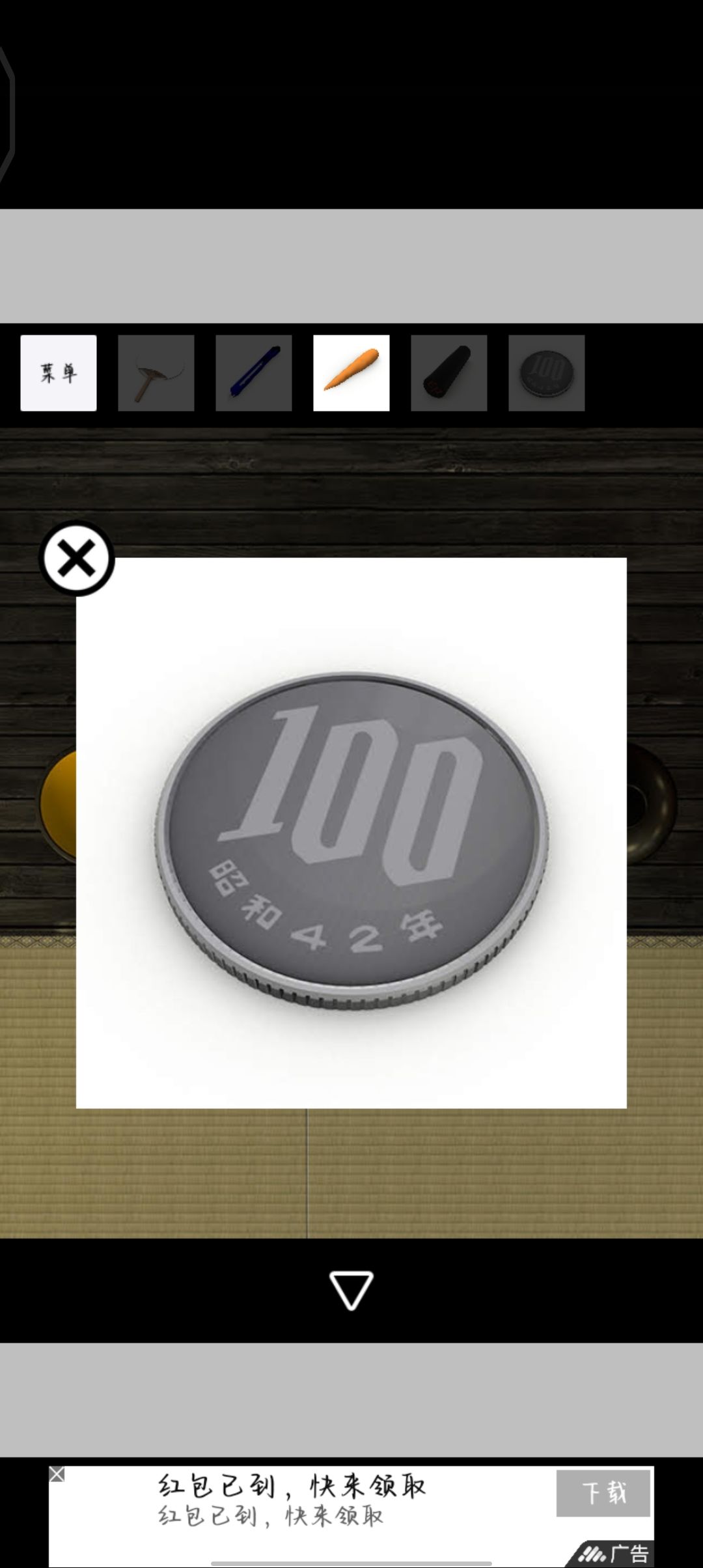 利用螺丝刀解开这个螺丝,就可以接近这个女人。再用扇子将女人身上的叶子扇走,女人变成猫,猫的坐垫上有一个硬币