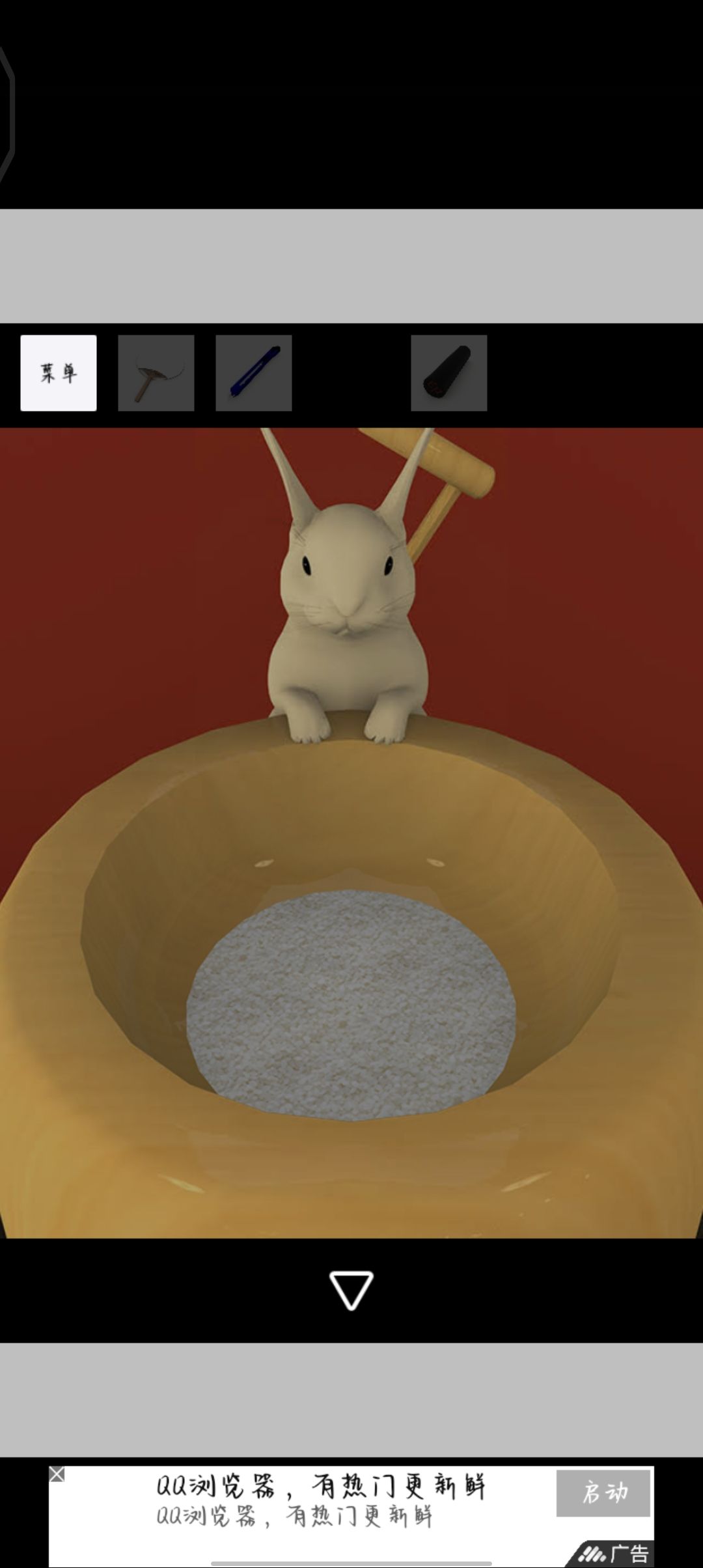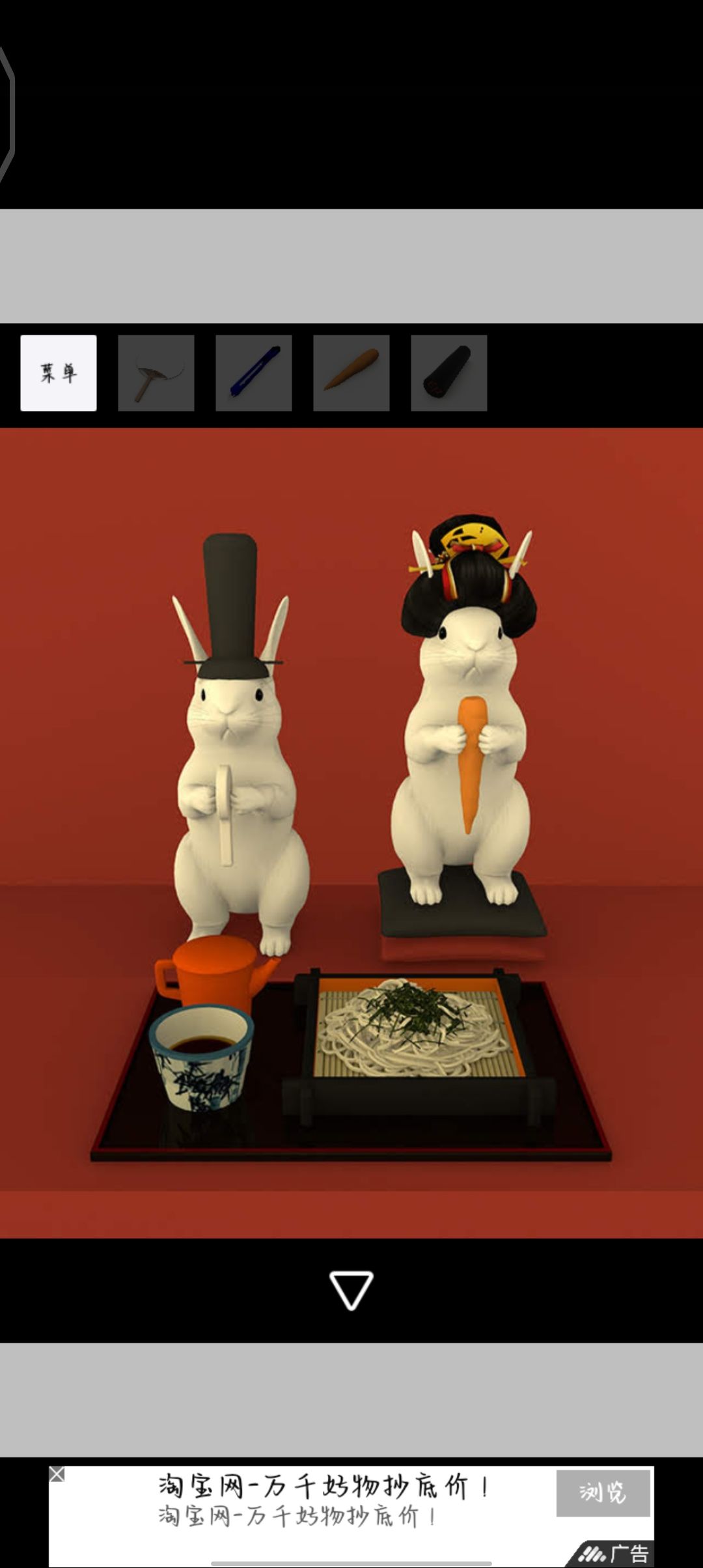 将饭团放到这个盒子里,会出现一群兔子,根据兔子耳朵解开这个柜子(1,3,4下垂),获得螺丝刀