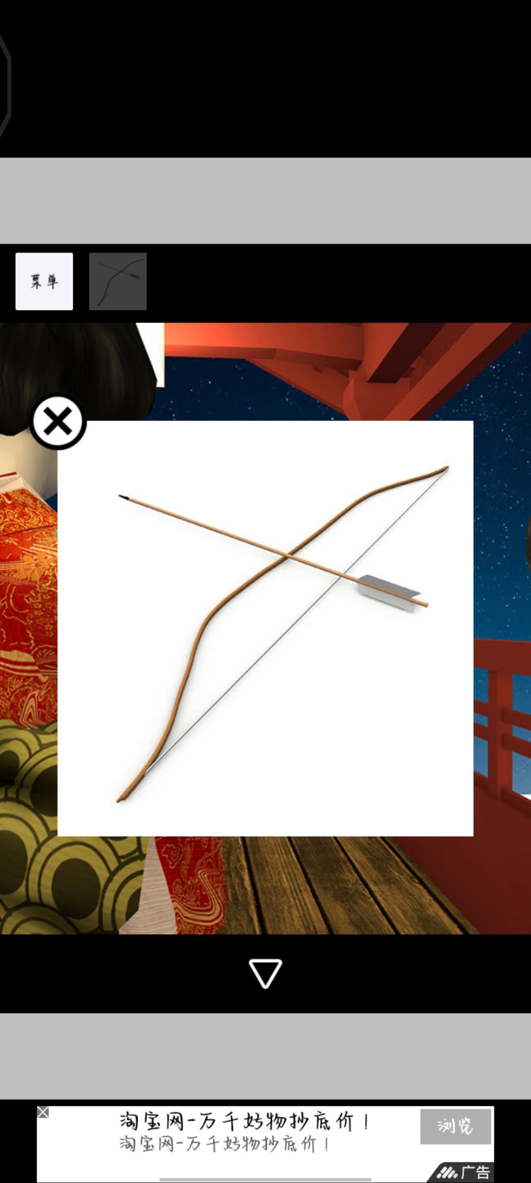 点一下女人,女人就会消失不见,再根据碗的位置打开盒子,获得弓