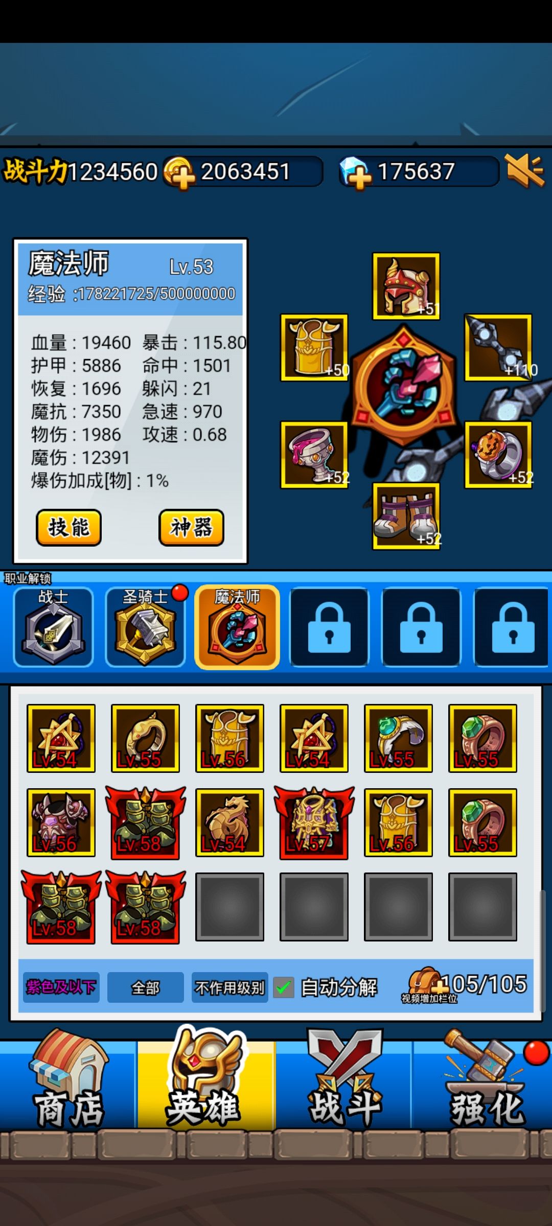 53级,挂机随意过95万boss