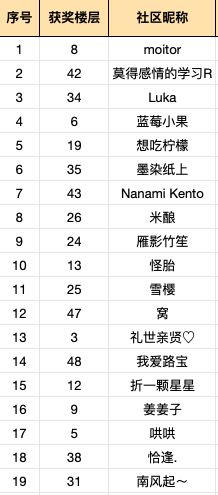 1.中奖楼层将采用随机数生成器,随机抽取幸运玩家。