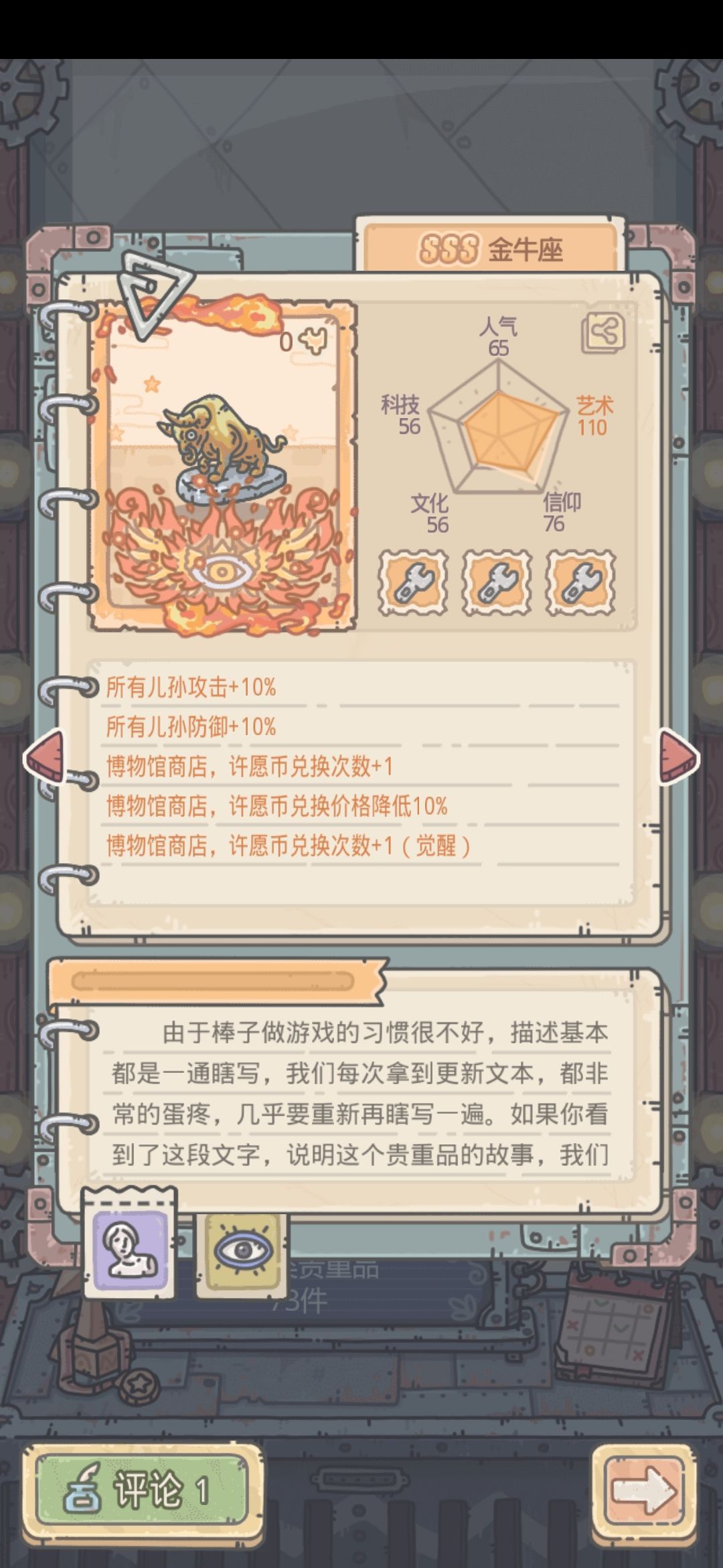 博物馆:打过该国的最后一个使徒即可解封,有几个位置是固定的贵重,前期可以考虑卡到1100S即可,后期再考虑S+ 放置的贵重前面有说,这里再举几个例子: