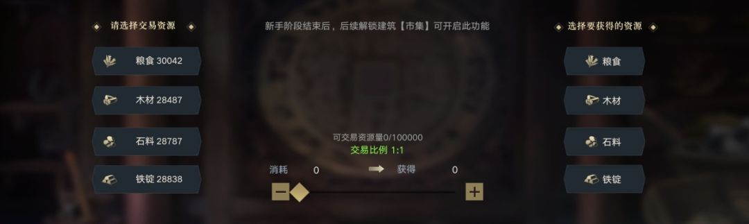 第三个是增加了新手期资源1:1互换功能(资源兑换上限十万),新手期结束后即使没有换到十万资源也依旧会消失。