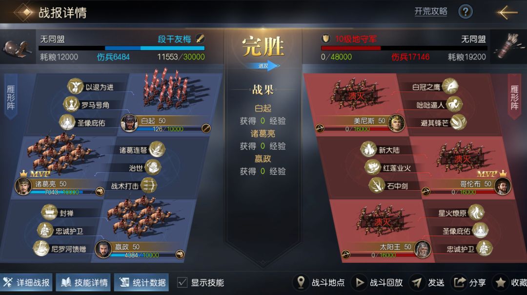 虽然该阵容属于PVP队伍,但为了体现诸葛亮的收割能力,这里以兵力超额的10级野地作为测试。