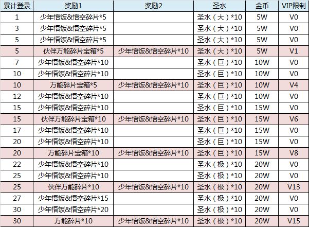 活动规则:每日登录游戏可领取少年悟饭&悟空碎片和其他丰富奖励。