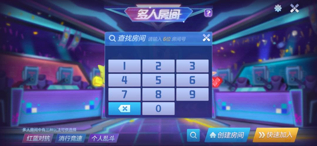 3、加入房间:点击快速加入可以随机加入有空位的房间,或选择搜索功能输入房间号,可以直接进入指定房间~