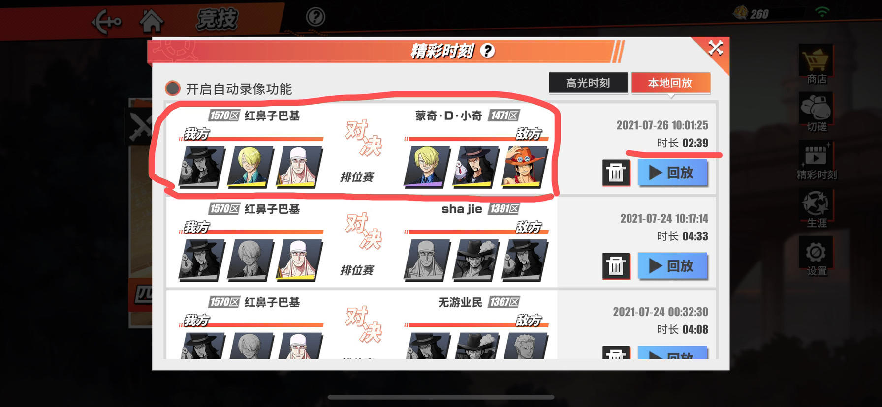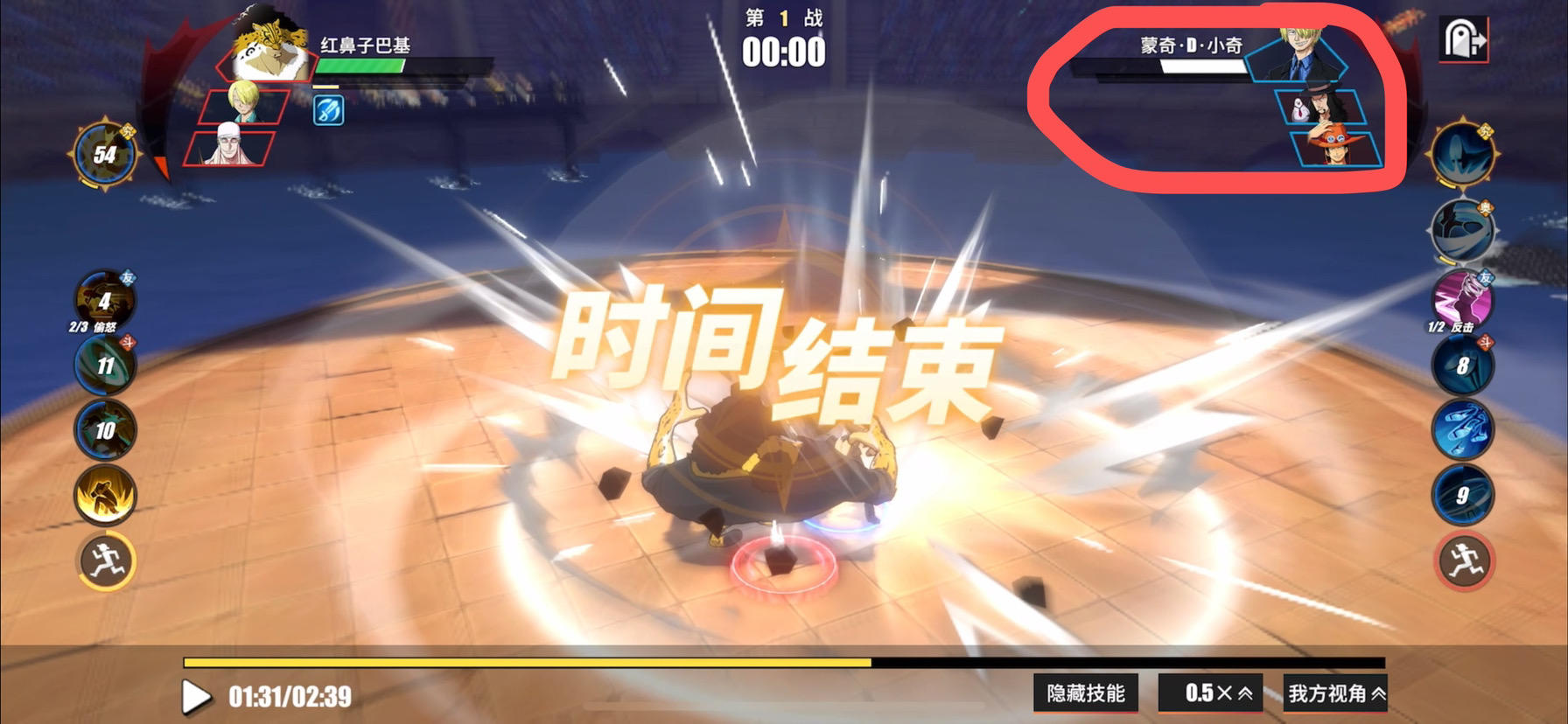 第一局实战中我血量高 结果判对面胜 第二局 莫名卡顿 直接退了 回看视频中 第一局结束是我胜 第二局视频是鲁兹 而实战中 我明明是黑足山治 太卡顿 直接退了 大家可以看截图和视频