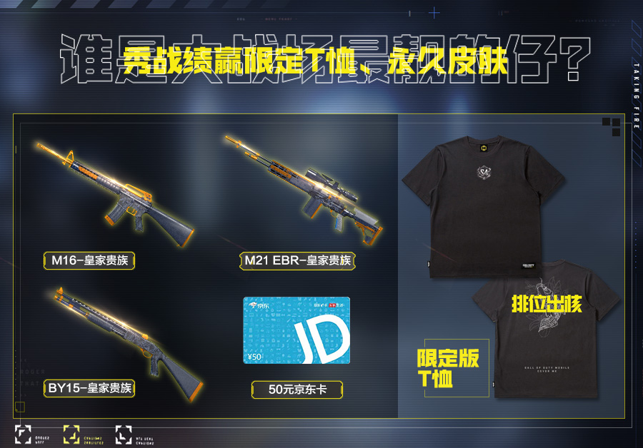 1、战绩最优秀的2名战士各送出使命召唤限定版T恤1件