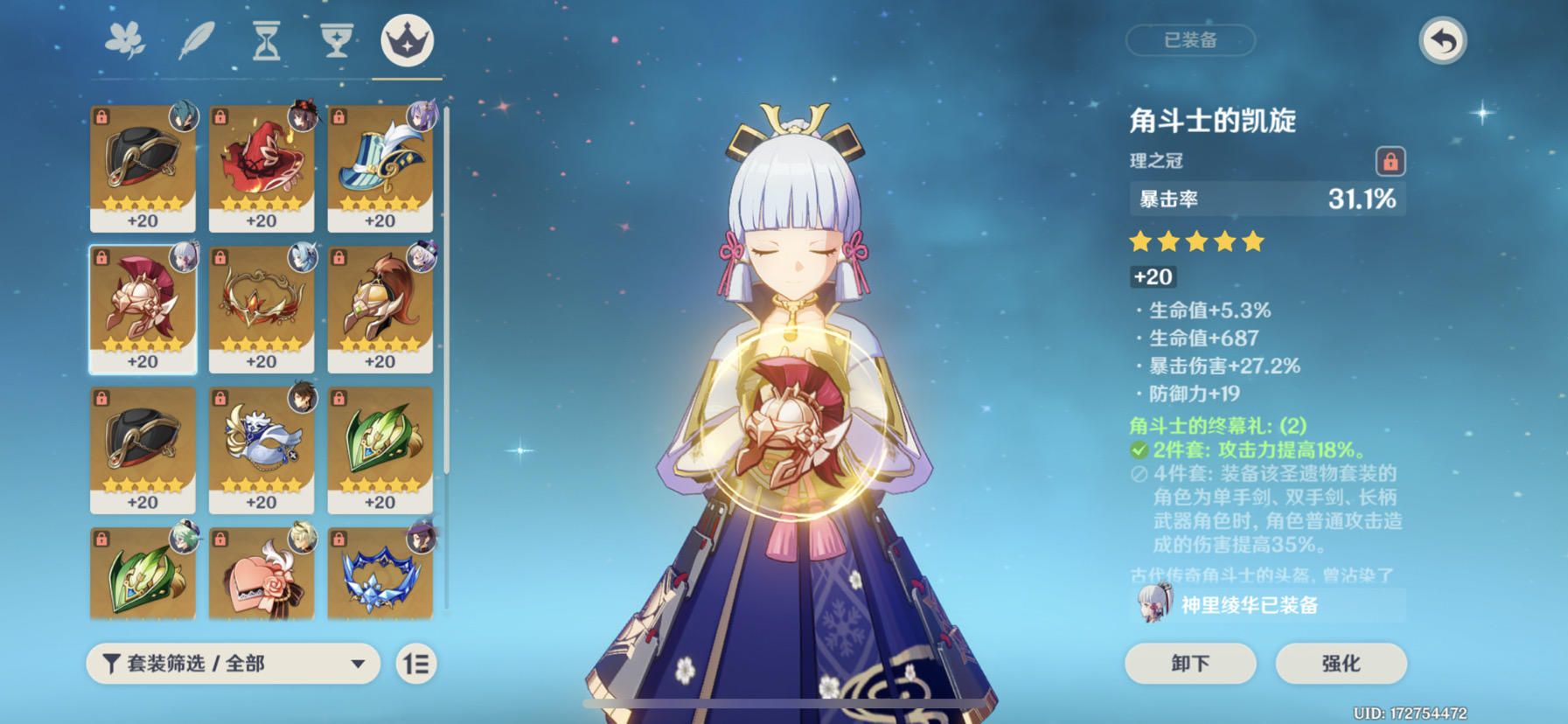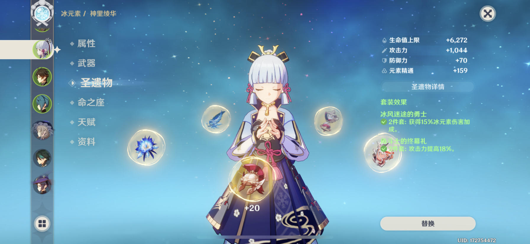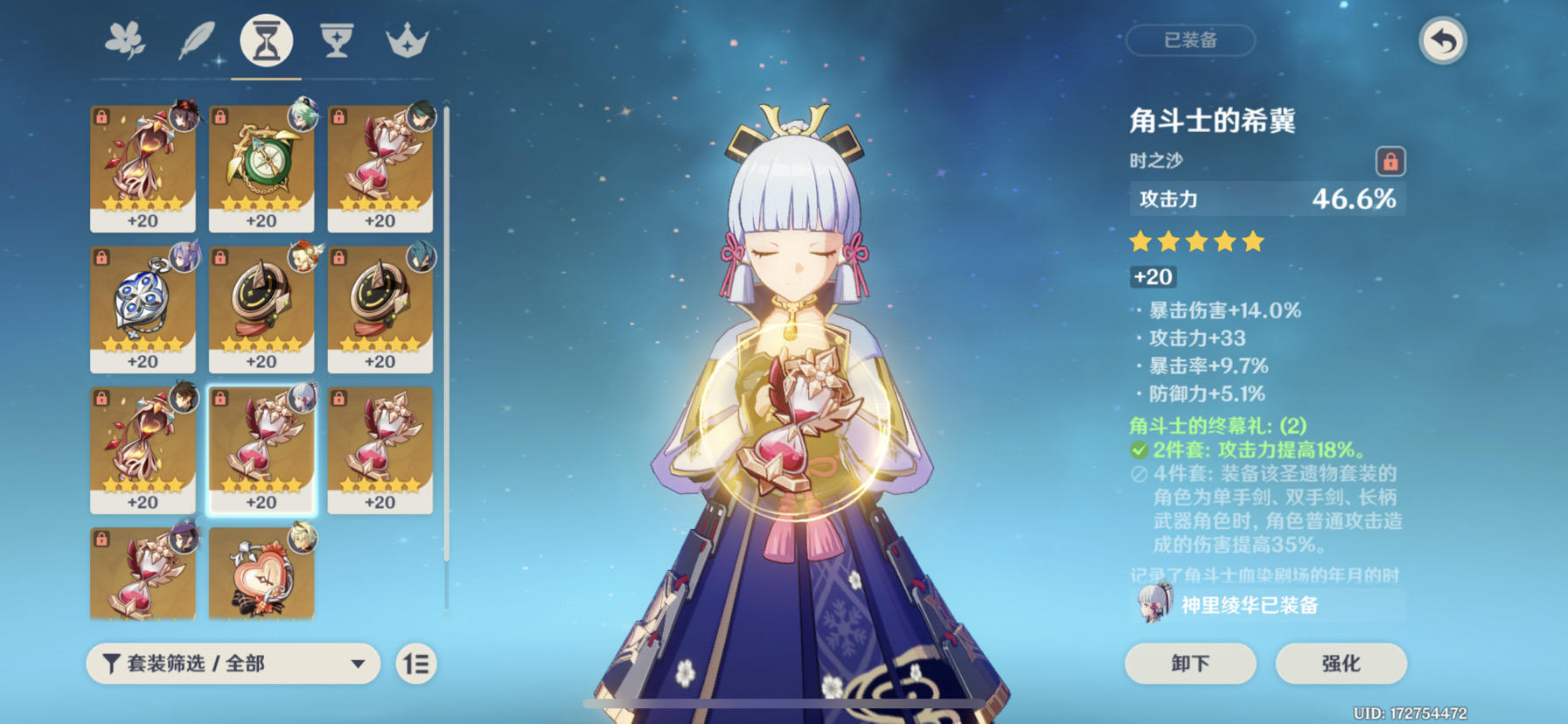 神里面板,和装备。人物80,武器满级雾切。技能没升,不晓得强度。