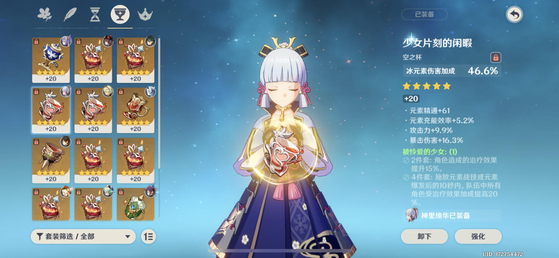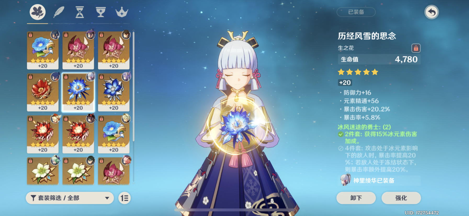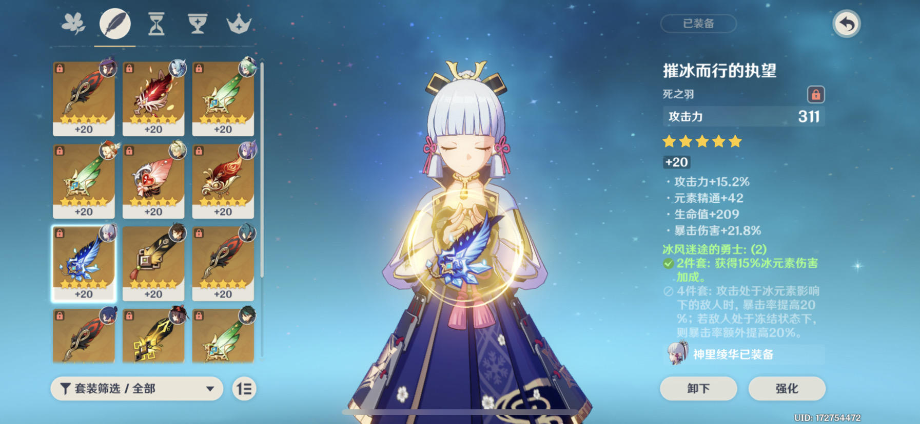 神里面板,和装备。人物80,武器满级雾切。技能没升,不晓得强度。
