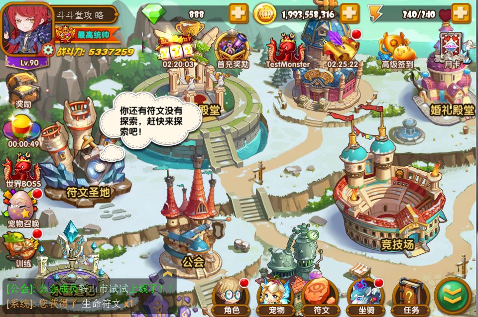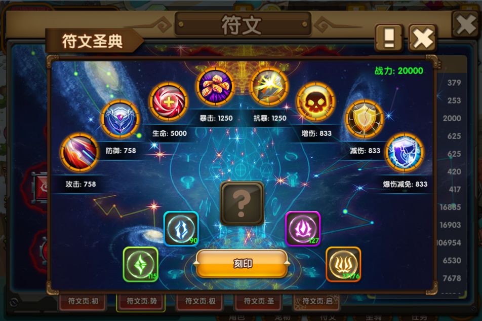 【符文系统】是一个相对简单的培养系统,我们可以通过【合成】或者【活动】就能获取符文。安装符文后,激活小书【符印圣典】,刻印强化【符印圣典】,属性就能获得加成和战力提升!