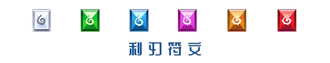 各个符文按照颜色,可以分为白色、绿色、蓝色、紫色、橙色和红色共计6种。其中只有【利刃符文】、【圣盾符文】、【热血符文】和【锋利符文】有红色,其他符文则是橙色为最高级别。