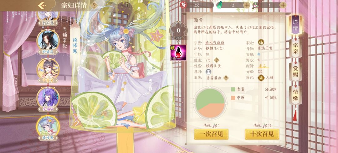 5.血统:如果不氪,能得到最高的血脉是83与70多,由于游戏机制,子嗣血脉必定拥有17的青鸾血,再加上83的父母血脉均值,所以自己生出来的崽,除了青鸾以外不可能达到100。
