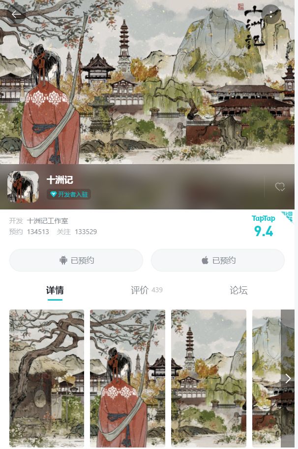 A 请在PC版(taptap.com)的taptap搜‘十洲记’预约~下图