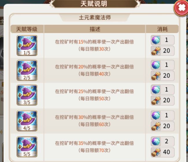 套装加速:无,所有成员都将同时获得全程矿产收益,同时共享队长的“土元素魔法师”天赋