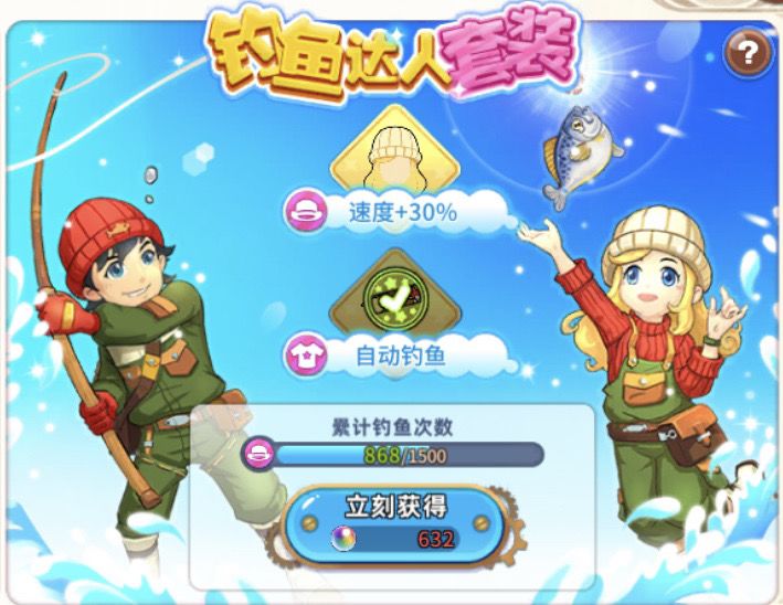 套装加速:钓鱼达人(帽子)、清凉钓鱼(自身加速)