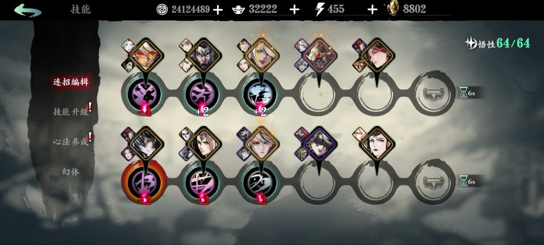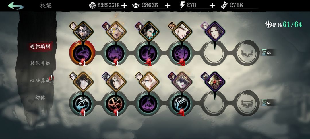 1.1、心法技能链。
