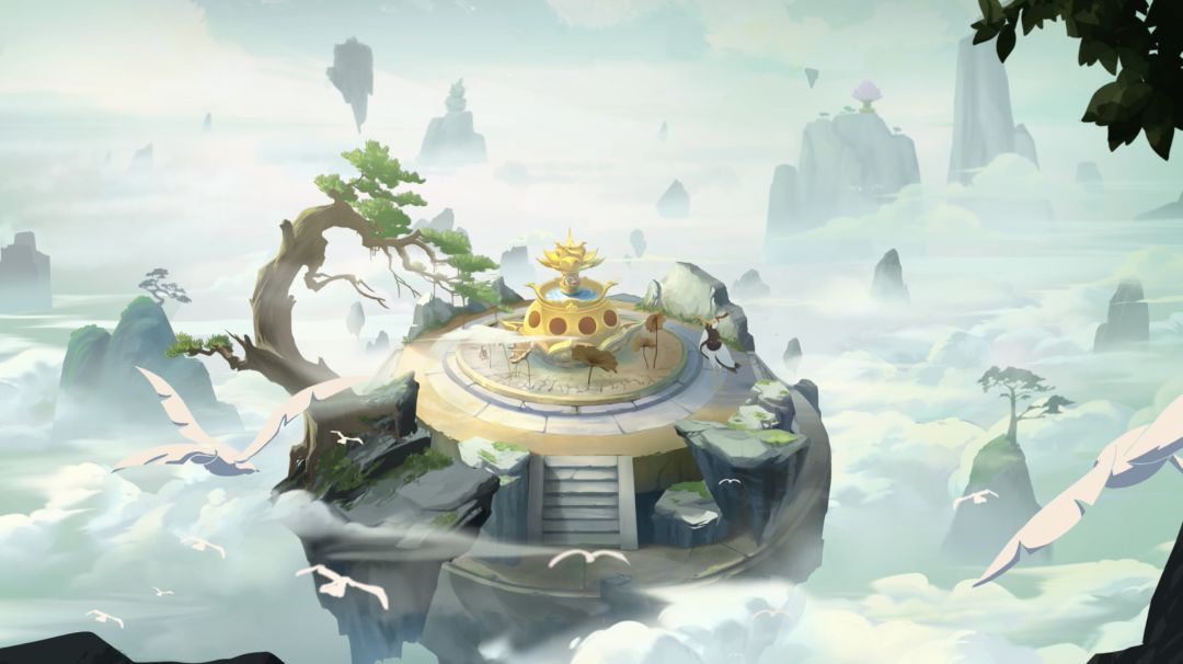 从游戏画面来看,上美影神话本身带有复古感,开心消除节借此将站内打造成焕然一新的仙庭世界,整体设计以展开的长卷卷轴为主体,卷轴本身高低绵延,卷轴上是错落的宫阙和仙山以及层层环绕的云海。楼宇和仙山分别是玩家需要闯关的关卡,根据IP存在的世界观进行设计。整体地图的美术风格是可爱的国潮风,楼体和山体材质更偏向潮玩的树脂质地,结构精炼,带来特别的视觉效果。
