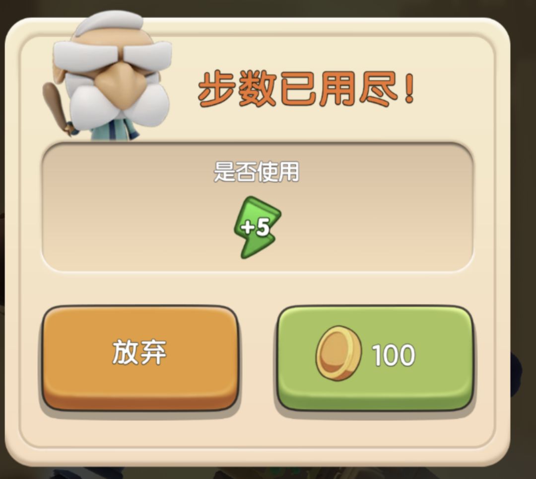 4、体力全部消耗后游戏会弹出是否需要用金币购买体力,购买会继续,放弃会退出关卡。