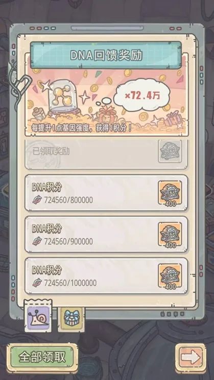 最强蜗牛的DNA系统作为游戏的底层模块之一,在后续的改版中基本没有太大变化。