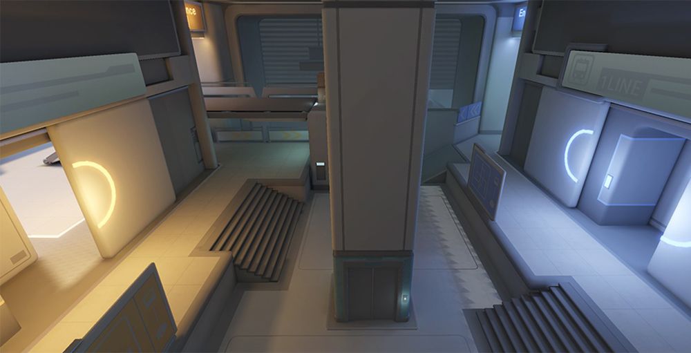 在我们场景组同学的设想里,左右对称的结构与适当的空间遮挡物,仿佛是一个地铁站。那些笔直延伸的线条,令人联想到“传送”“运输”,因此我们就以这个构思为基础开始进行未来感、科技化的延展。