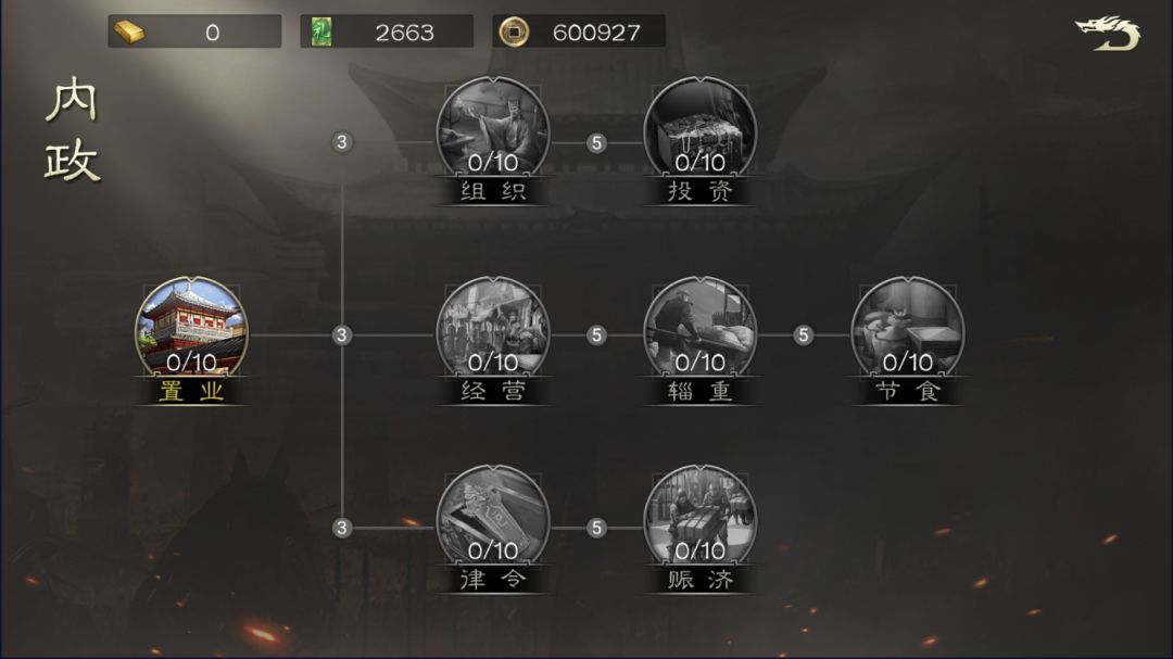 个人加成则是城池产业相关的科技,产业相关科技位于科技模块的内政分支中。【置业】用于提升主公购买城池产业的数量上限,该科技研发到一定等级后,即可解锁【经营】科技来提高城池产业的资源产量。