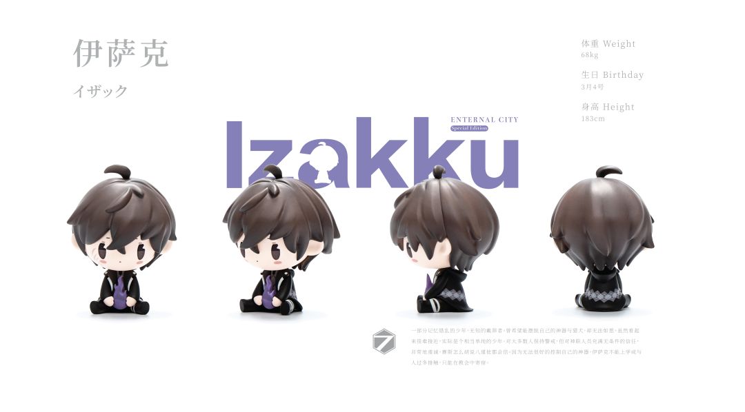 其中普通款为白、阿希莉亚、安、屠怯怯、璃璃子、伊萨克、幽桐、夜,隐藏款为塞拉菲姆。
