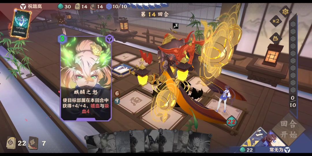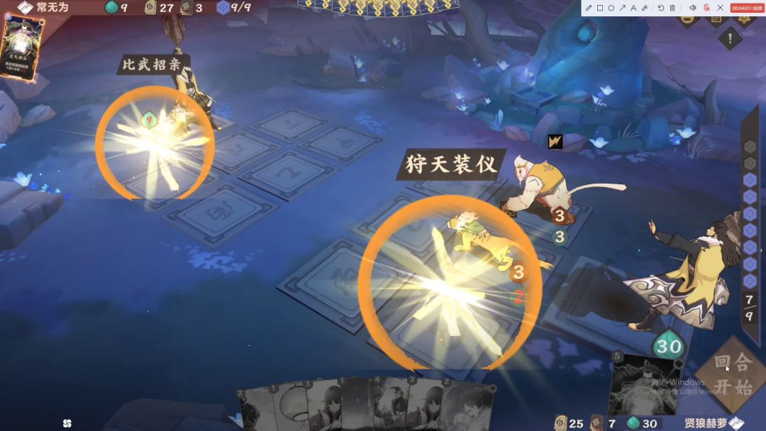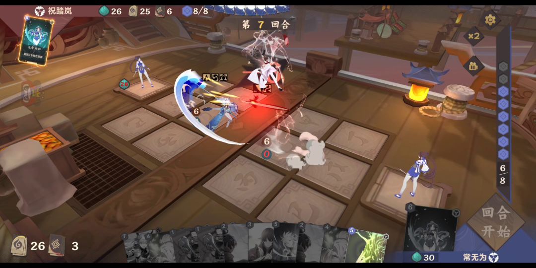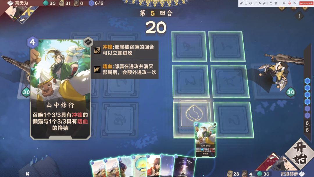 这里再补充一个特殊情况,这种情况的具体操作是先5号位打一张法术指向6号位,再用一张牌把5号位法术挤到6号位,这样就相当于6号位法术自己指自己,如果6号位结算时有部署,法术是能生效的。视频中可以看到第二张【狩天装仪】贴到了【比武招亲】召唤出来的【灯笼】身上