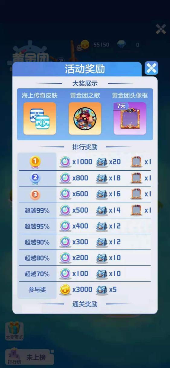 同时,黄金团活动设有排名机制。不同位次的排名奖励如下: