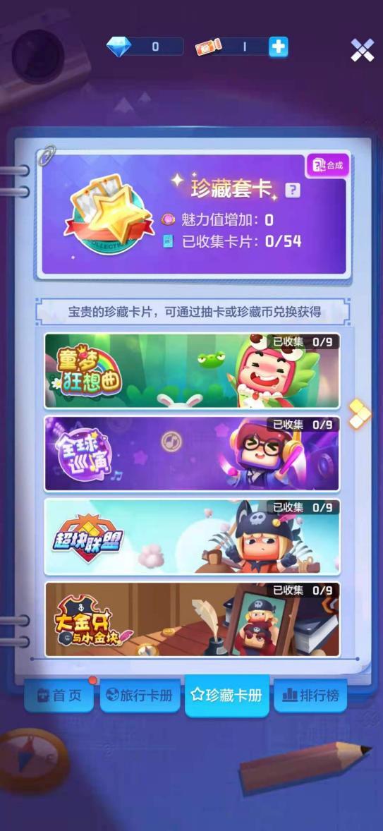 超块联盟里每一张卡片都是拥有超能力的小英雄,听说拥有了这些卡片就能开启好运加成buff,七块儿是全部收齐了,你呢?珍藏卡片可通过抽卡和珍藏币兑换获得。第一期珍藏卡册时间为7月29日—8月25日,本期卡册的主题有:童梦狂想曲,全球巡演,超块联盟,大金牙与小金块。大金牙与小金块记录了大金牙和小金块相互陪伴、成长故事,每一张卡都是满满的回忆,偶尔翻出来看看心里涌上一阵阵回忆杀。其他卡册的卡片也同样拥有着不同寻常的故事,让我们在游戏里找答案吧!集齐完整的一套卡册还可获得特定主题的会员证!