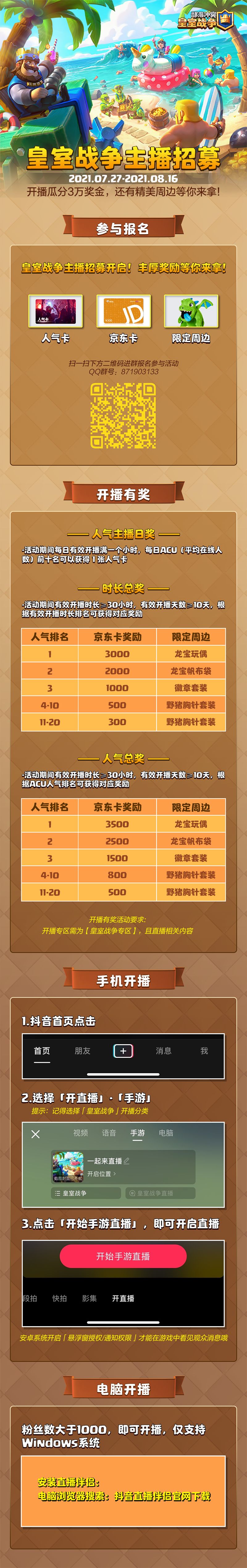 根据上方所述,进入皇室战争主播招募QQ群:871903133,即可报名参与活动,多重好礼等你抱回家!