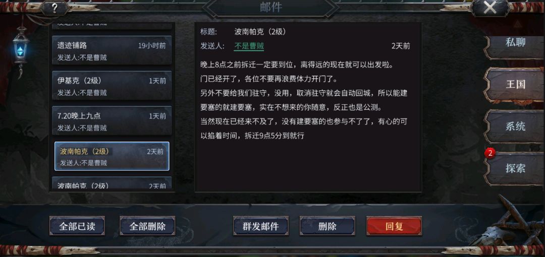 王国内指挥一般会提前以邮件的方式,和大家约定攻打时间